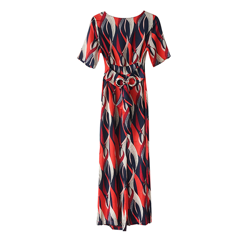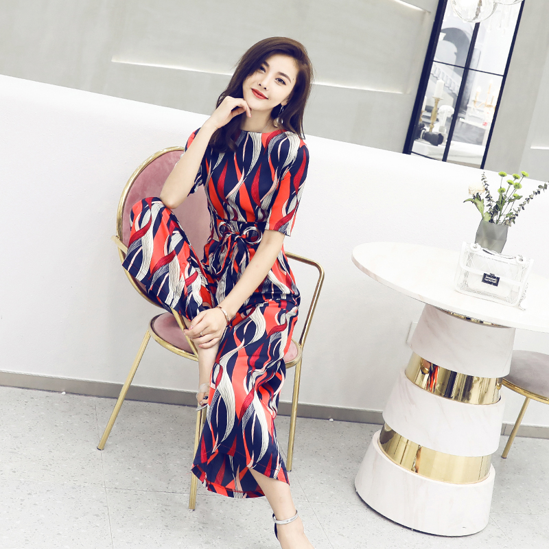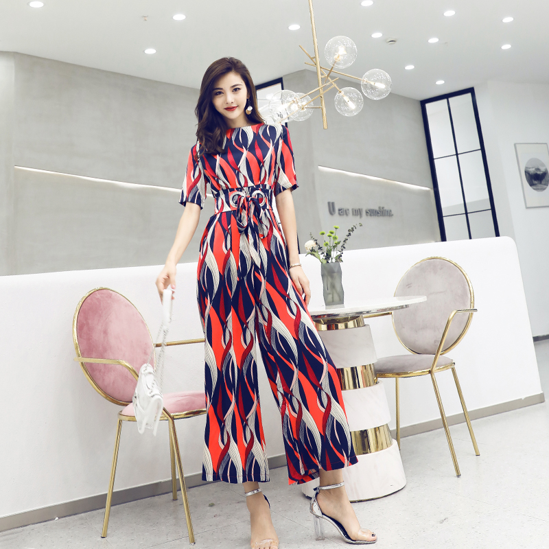 名媛氣質2018夏季新款印花短袖九分闊腿收腰顯瘦網紅溫柔連體褲女