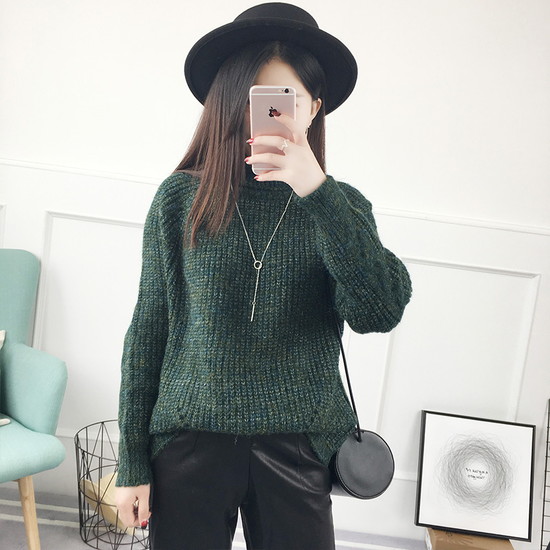 / 高領套頭毛衣女秋冬韓版寬松純色針織衫加厚打底衫女裝新款潮