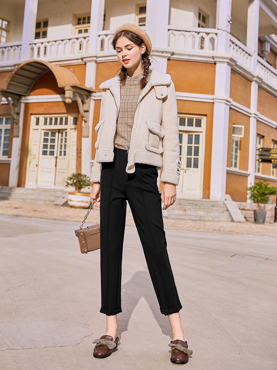 MG小象高腰休閑褲女秋冬新款ulzzang蘿卜褲學生黑色修身顯瘦褲子