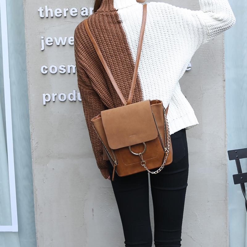磨砂雙肩包女新款韓版時尚鏈條女包單肩斜挎包多用兩用包包潮