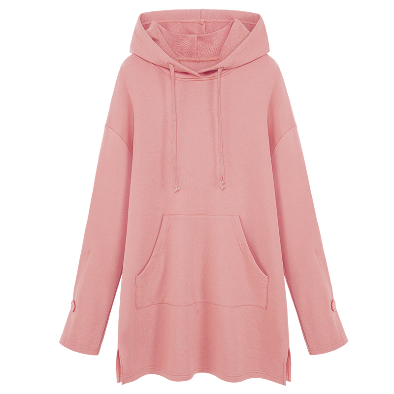 MG小象連帽套頭衛衣女中長款休閑衛衣裙冬季2018新款寬松甜美上衣