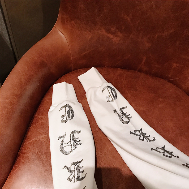 / 小清新時尚新款哥特字母亮片圓領抽繩ovresize加絨連帽衛衣外套女