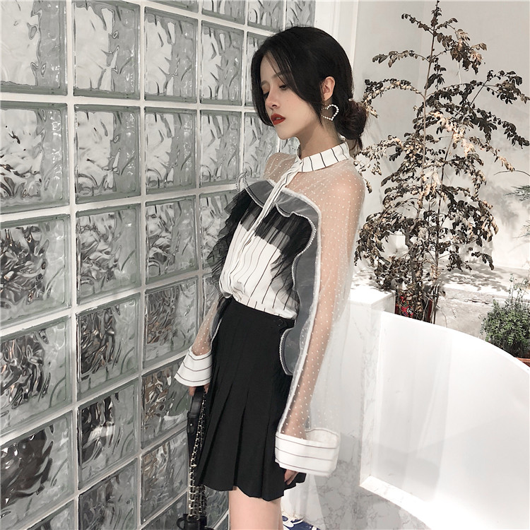/ 新款韓版秋季時尚蕾絲chic一字肩甜美小清新襯衫仙女氣質公主上衣