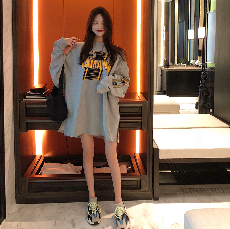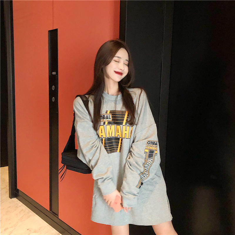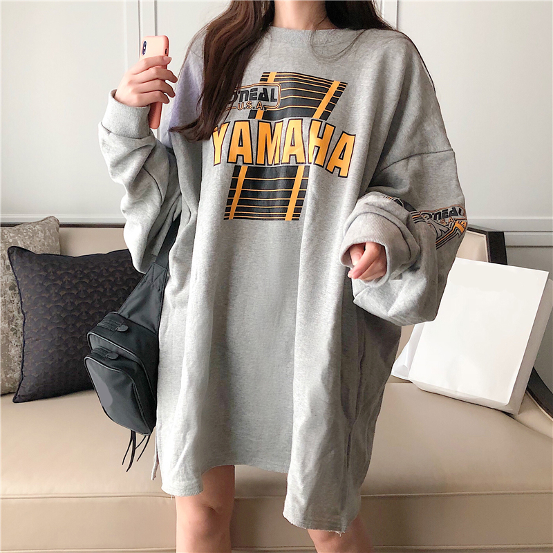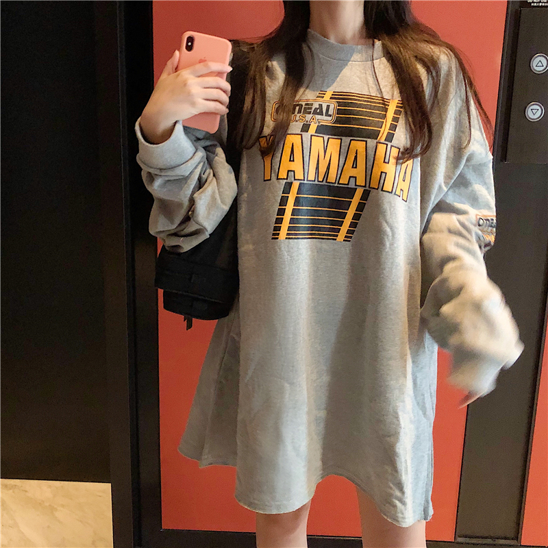 / 港味新款韓版秋冬季百搭慵懶風上衣女chic寬松字母印花中長款衛衣