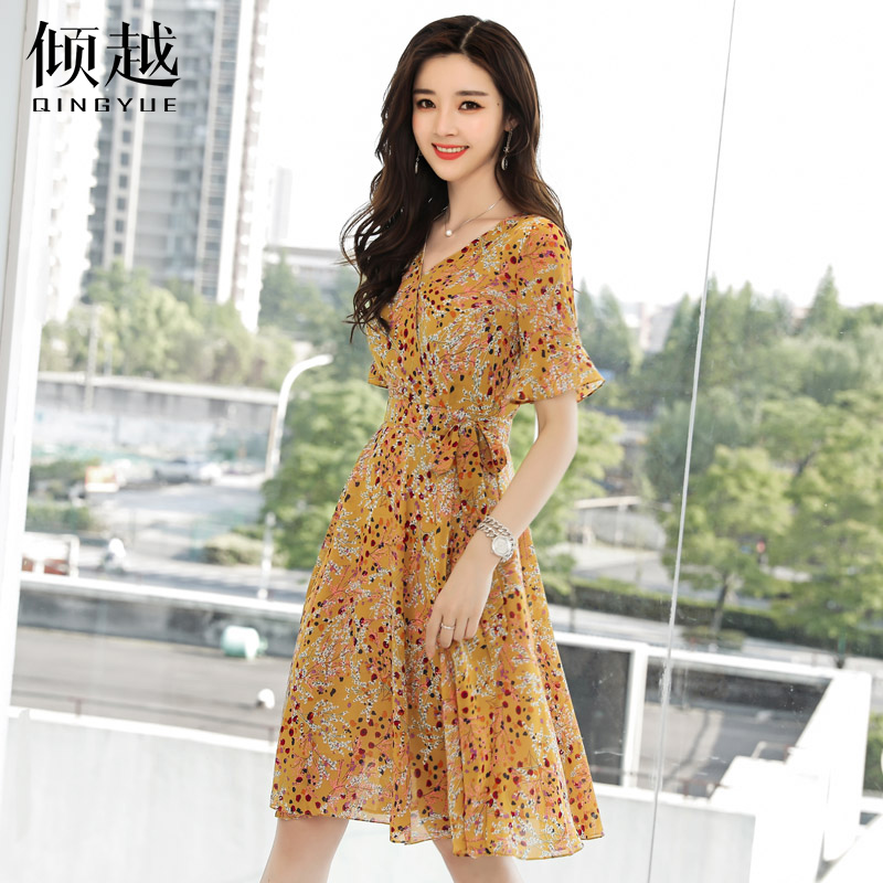 / 2017夏季新款碎花裙海邊度假波西米亞雪紡沙灘裙中長款V領連衣裙