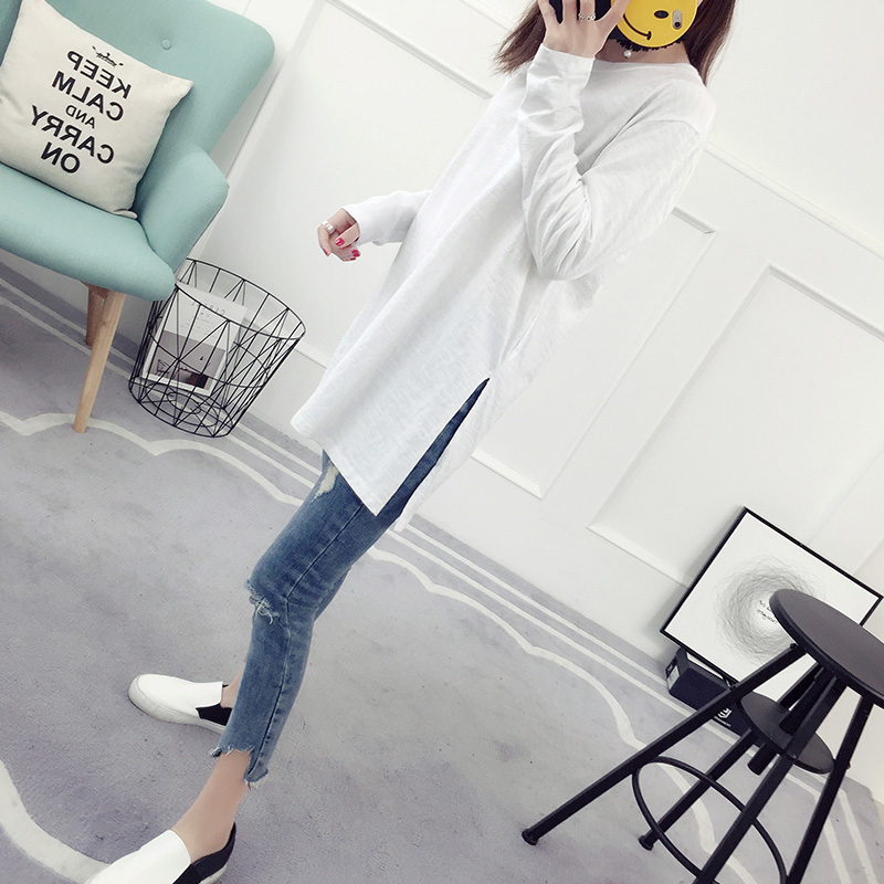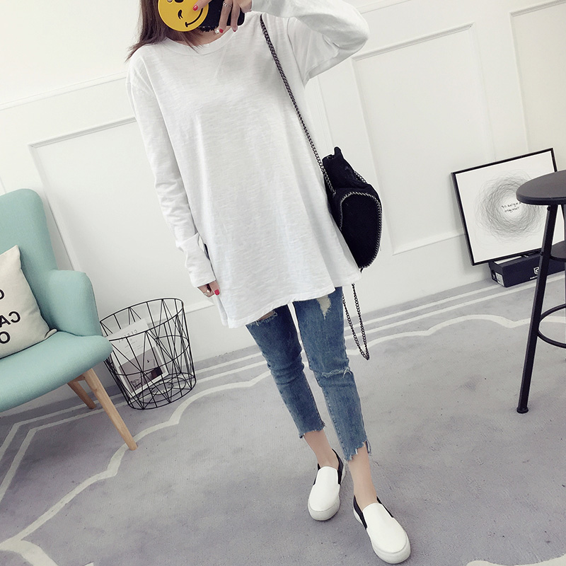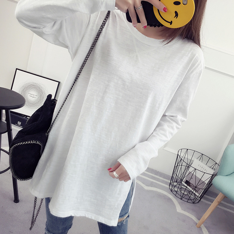 白色t恤女長袖寬松韓版圓領打底衫春季時尚新款簡約學生百搭