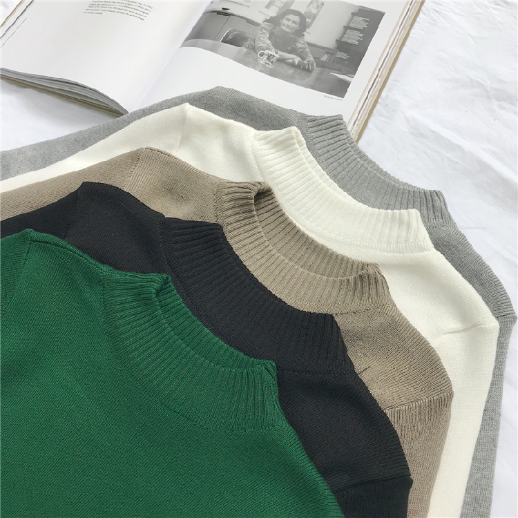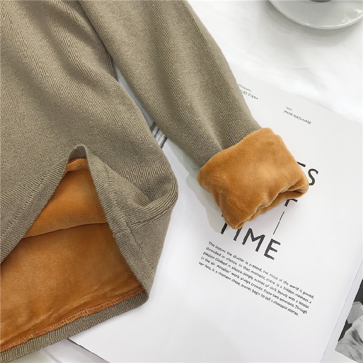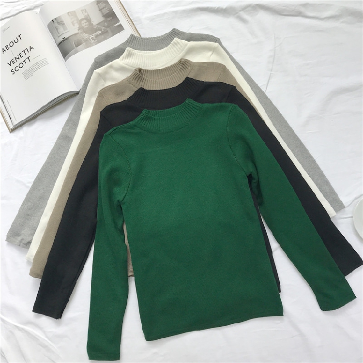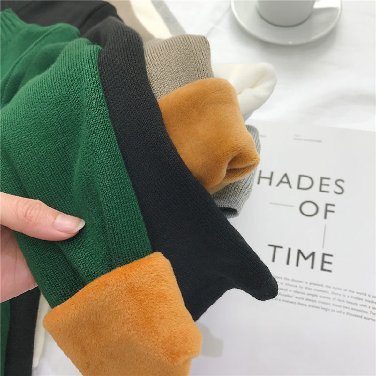 秋冬韓版半高領加絨加厚上衣女新款修身長袖針織衫套頭毛衣打底衫