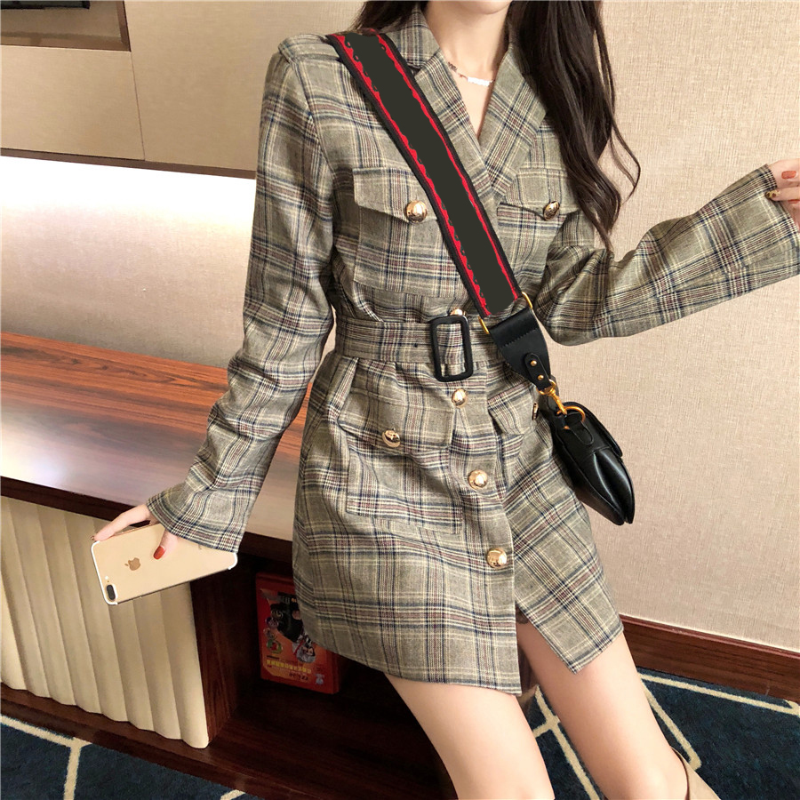 港味復古chic中長款系帶修身格子西裝外套秋季新款時尚百搭上衣潮