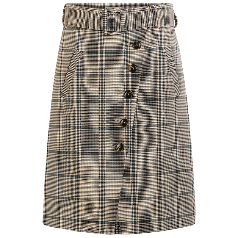 MG小象高腰格子半身裙女秋2018新款中長款a字裙港味復古chic裙子