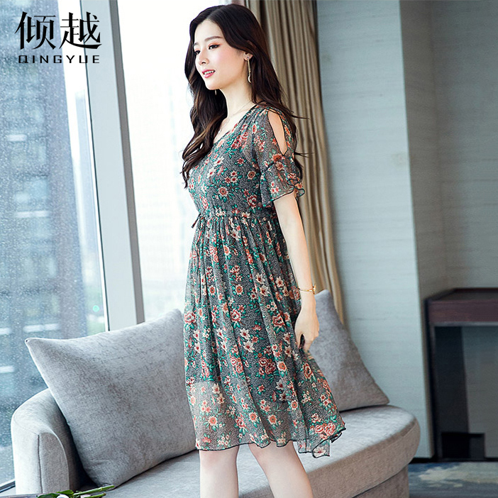 / 碎花雪紡連衣裙女長裙2017夏季新款時尚氣質韓版顯瘦中長款大擺裙