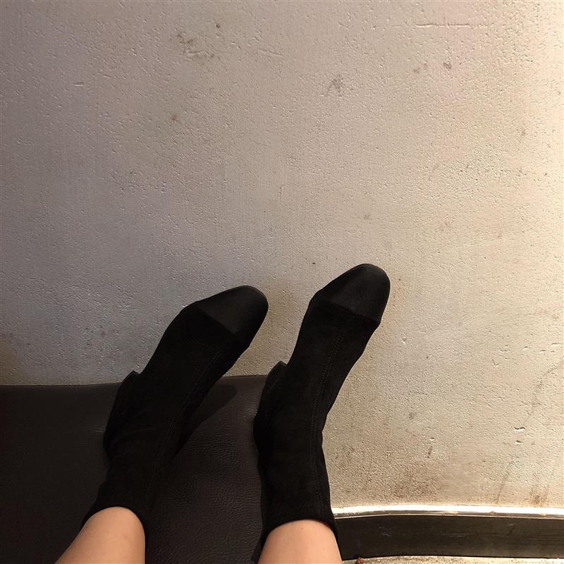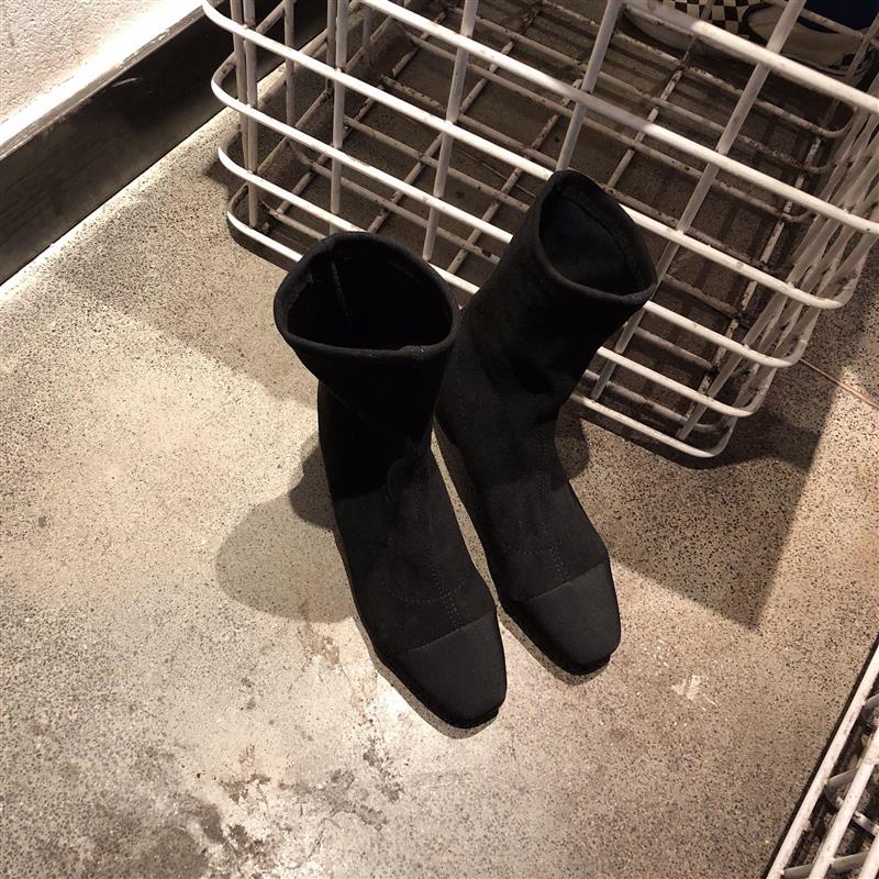 / 2018新款秋冬襪靴女瘦瘦靴彈力靴粗跟時尚氣質百搭純色中跟短靴潮