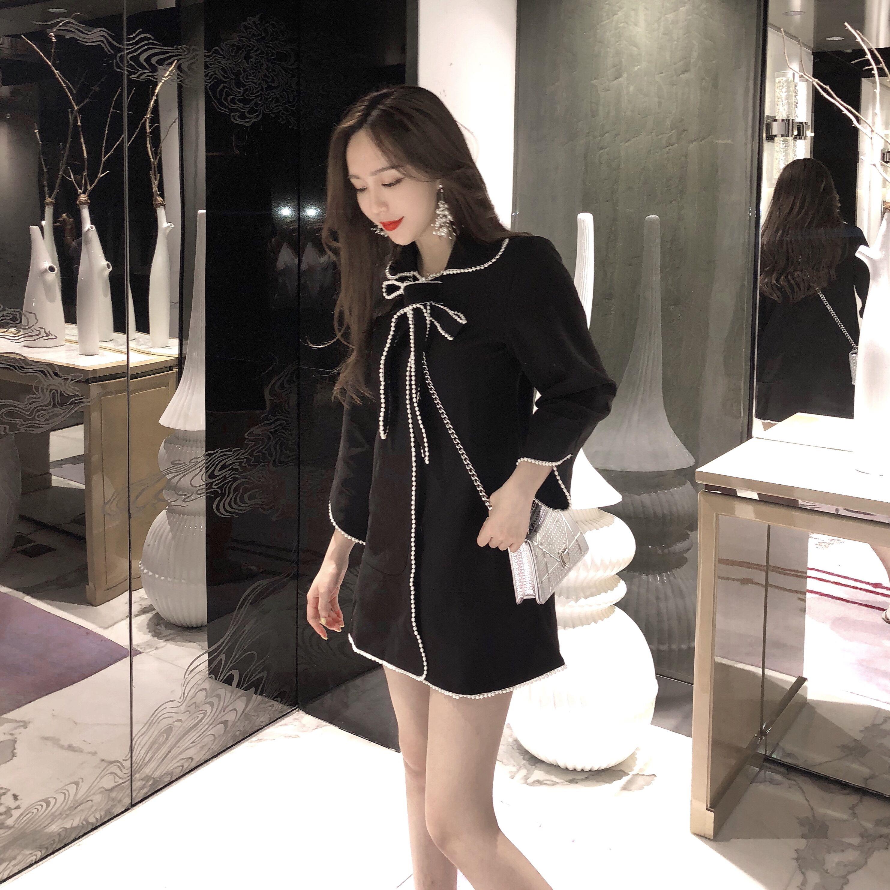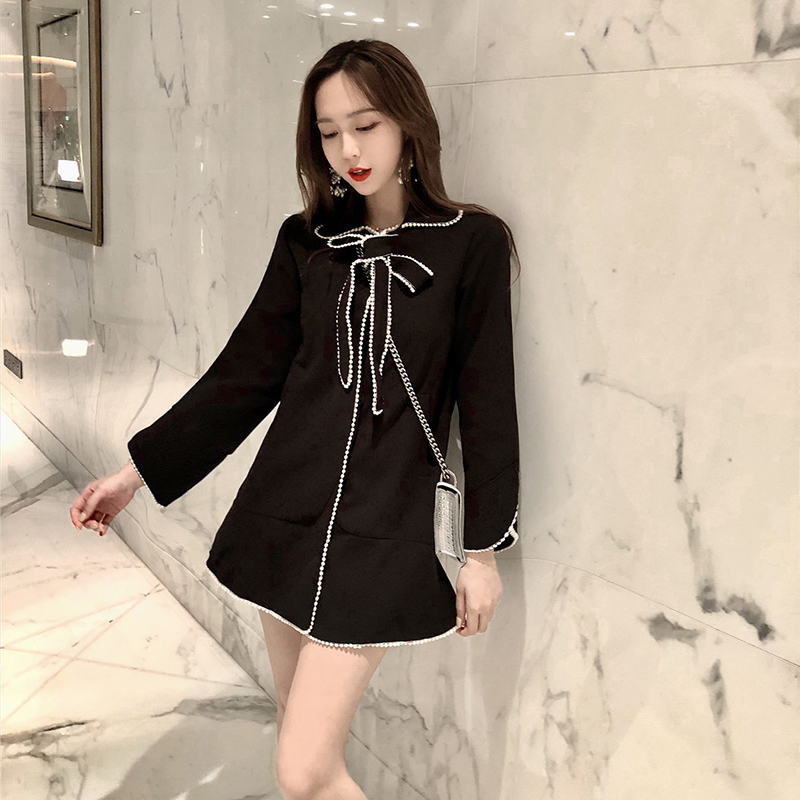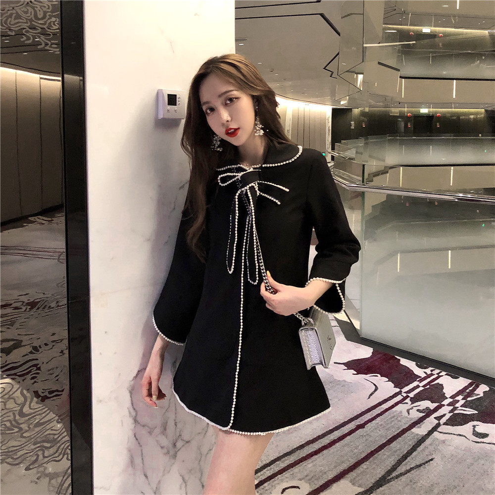 甜美小清新2018秋季新款韓版百搭chic復古修身釘珠小香風風衣外套