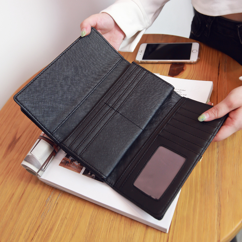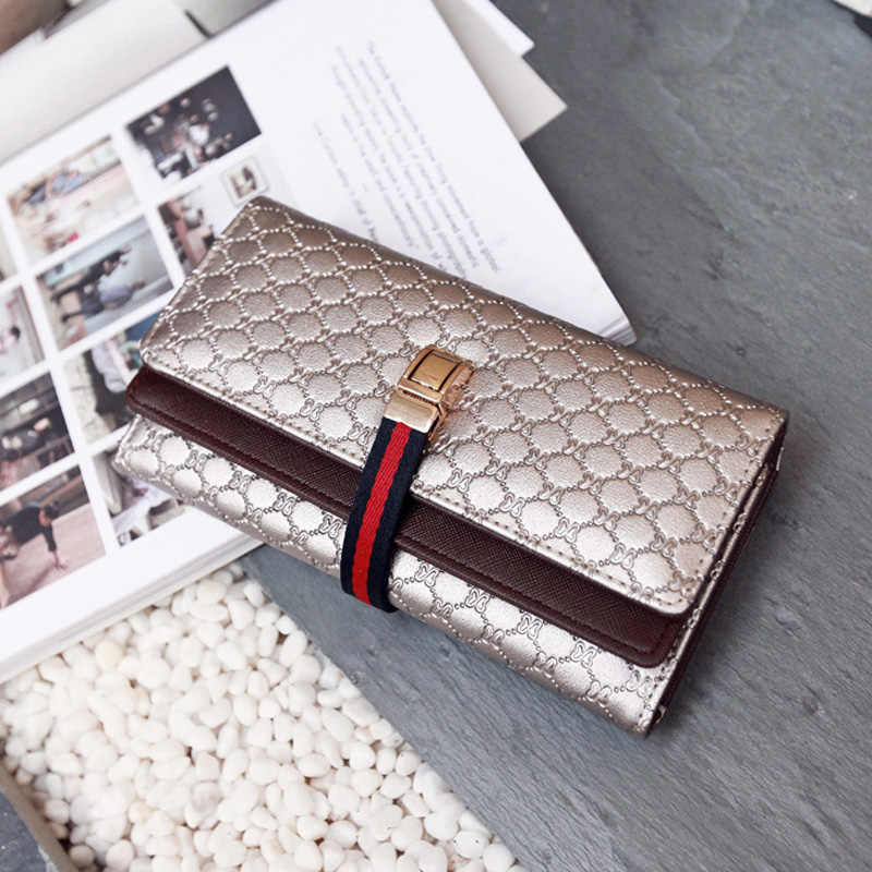 新款韓版歐美復古菱格拼接撞色搭扣女士長款錢包錢夾手機包