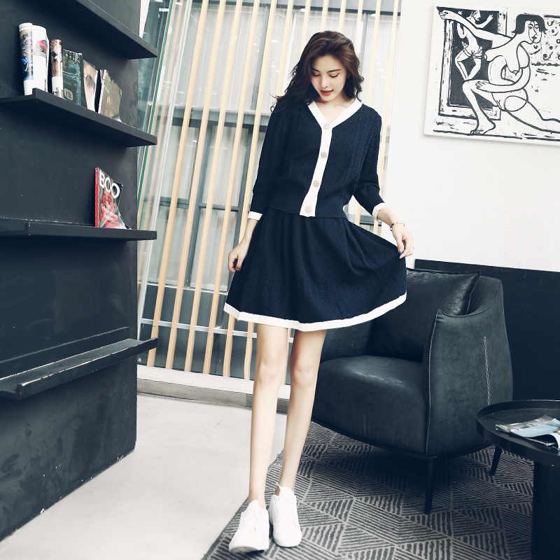 2018秋季新款韓范小心機女裝針織衫上衣開衫高腰半身裙簡約兩件套