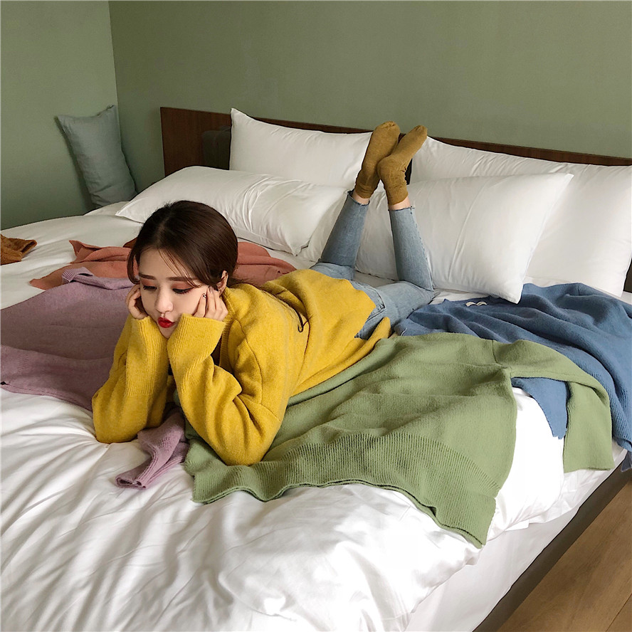 / 韓版慵懶風寬松新款小清新時尚chic百搭網紅毛衣女套頭糖果色上衣