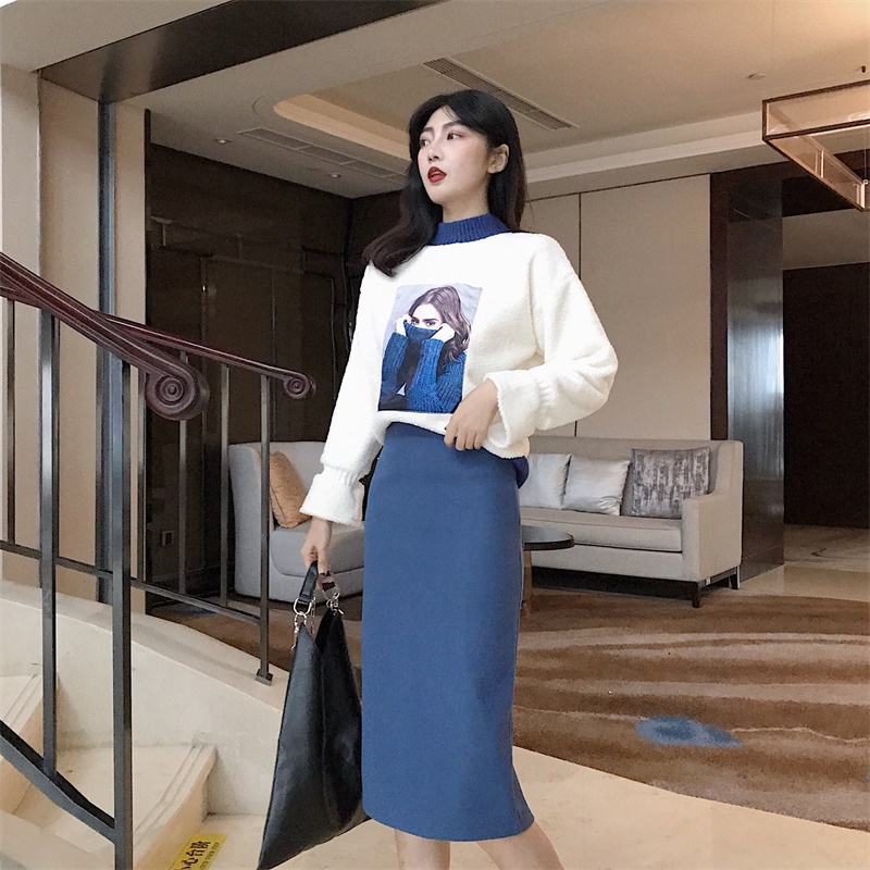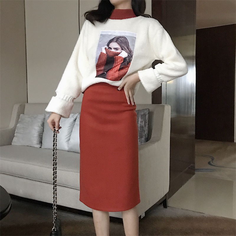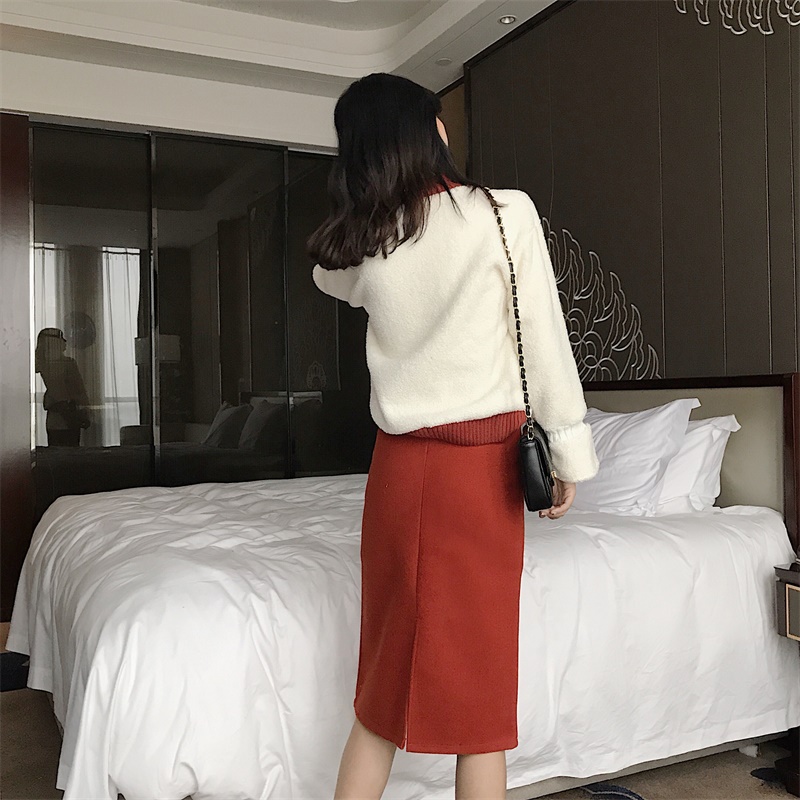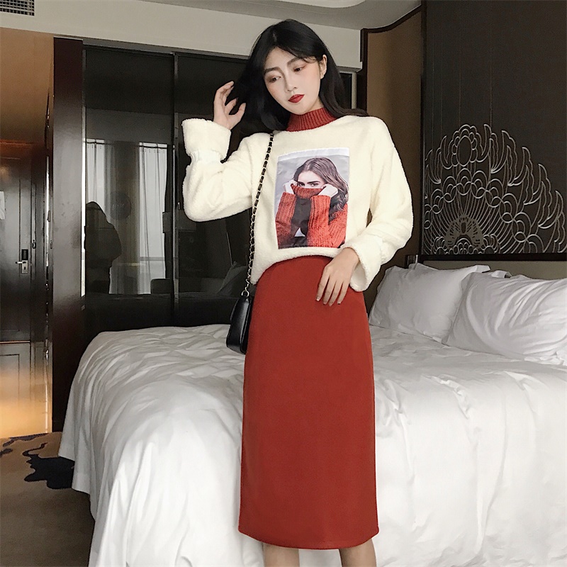 / 洋氣套裝女秋冬羊羔毛衛衣加搭中長款裙子時尚兩件套