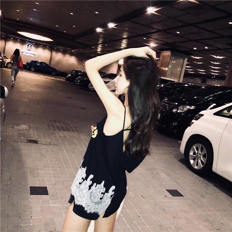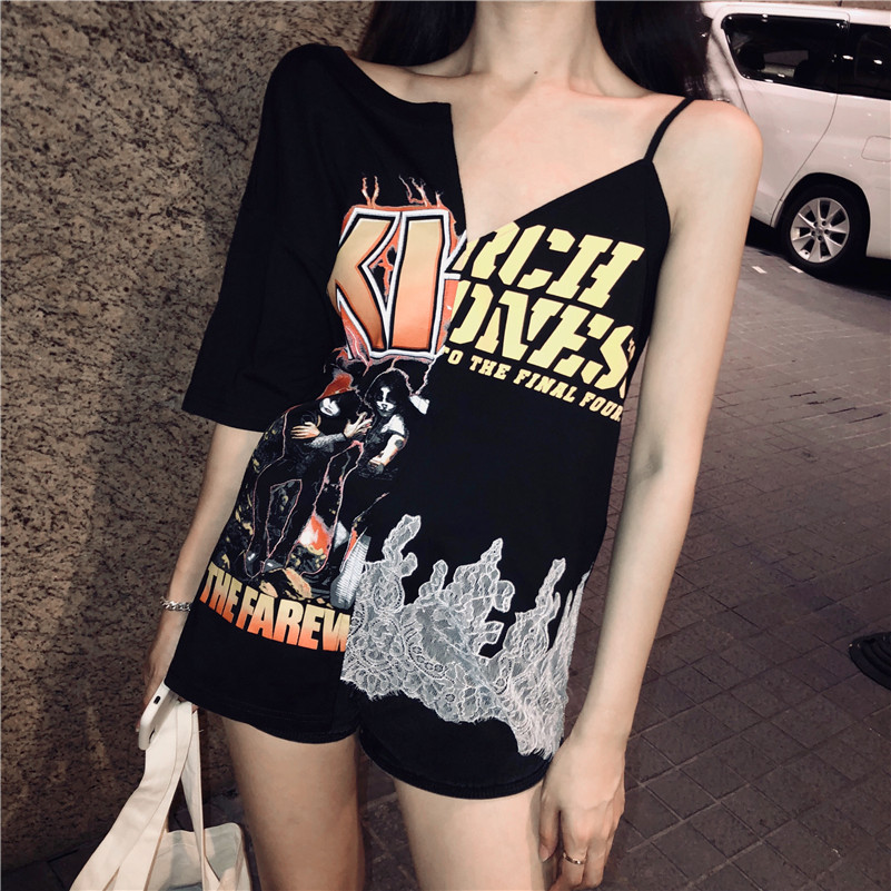 新款復古t恤蹦迪衣女短袖露肩露背百搭小心機性感下身失蹤上衣潮