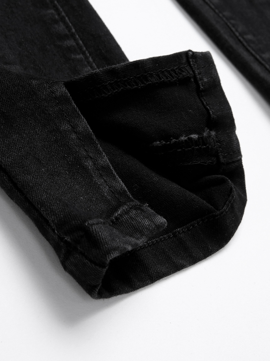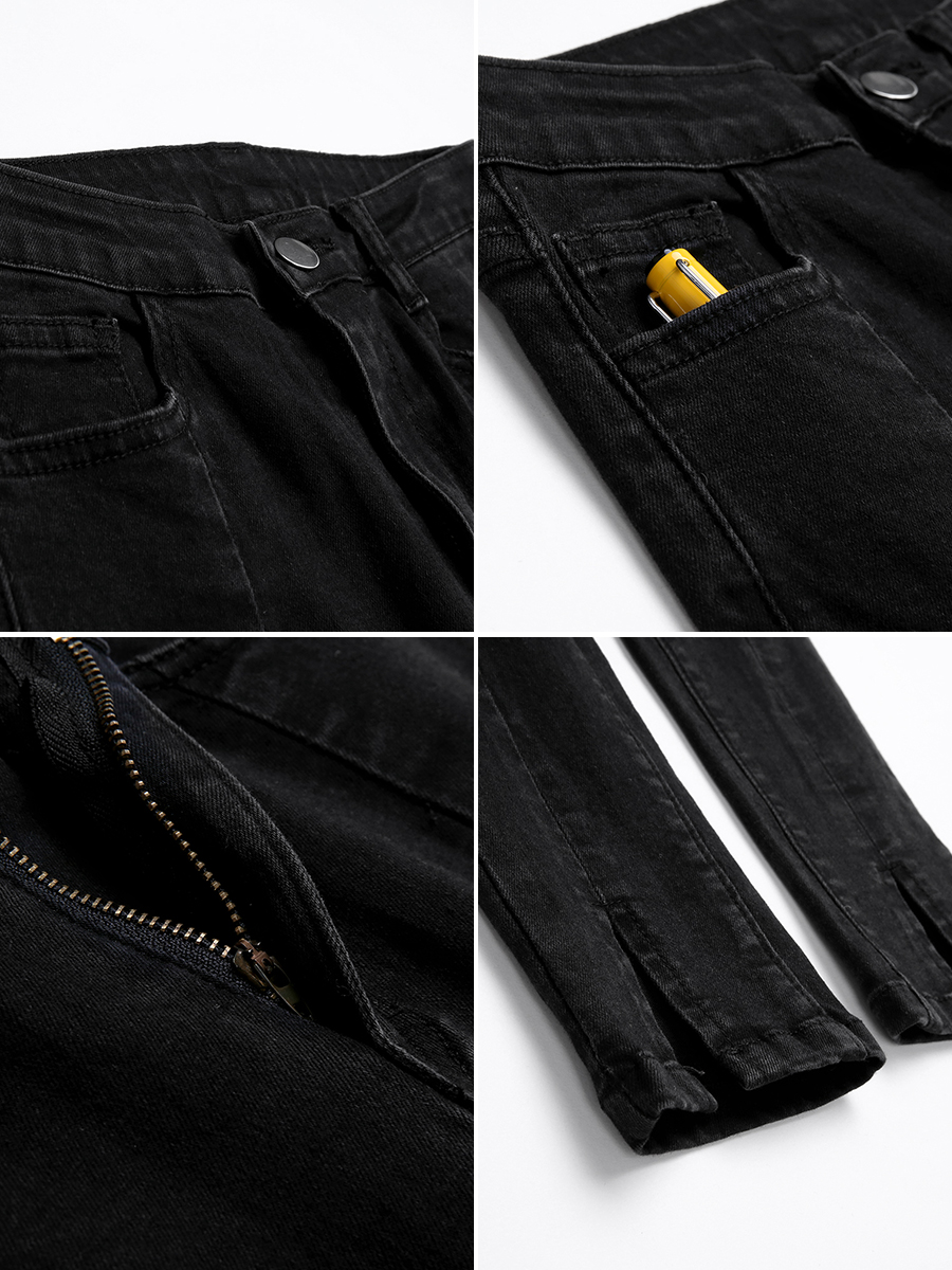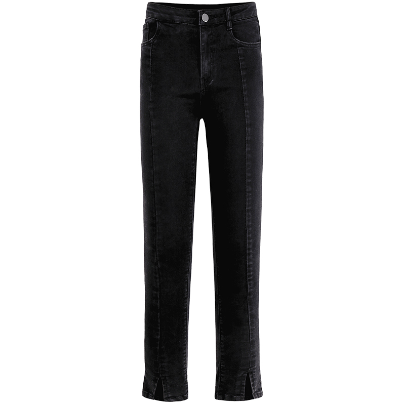 MG小象黑色緊身牛仔褲女秋季新款開叉高腰小腳褲學生ulzzang褲子