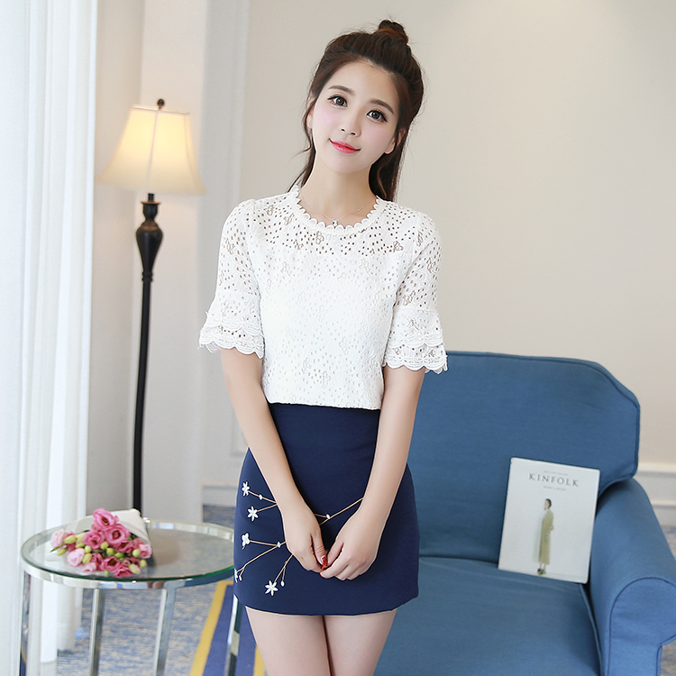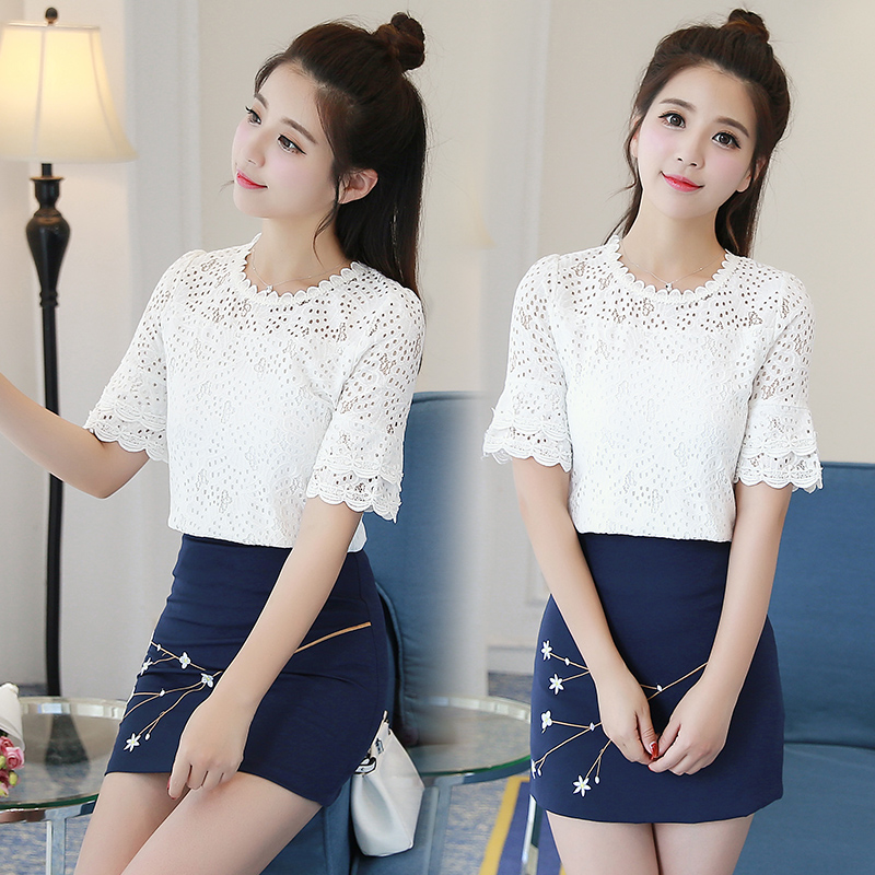 / 女裝春夏新款套裝裙小清新寬松蕾絲上衣短裙學生兩件套連衣裙