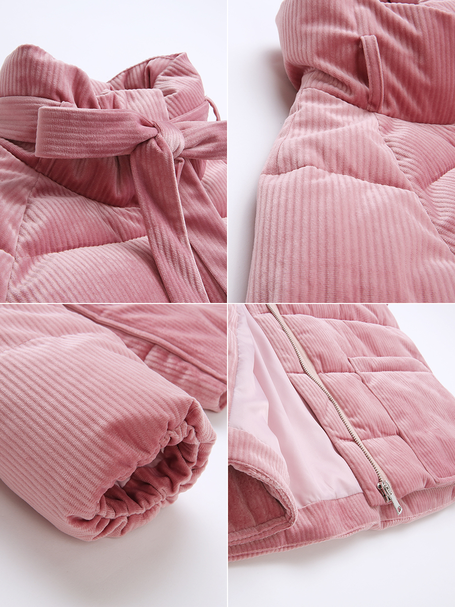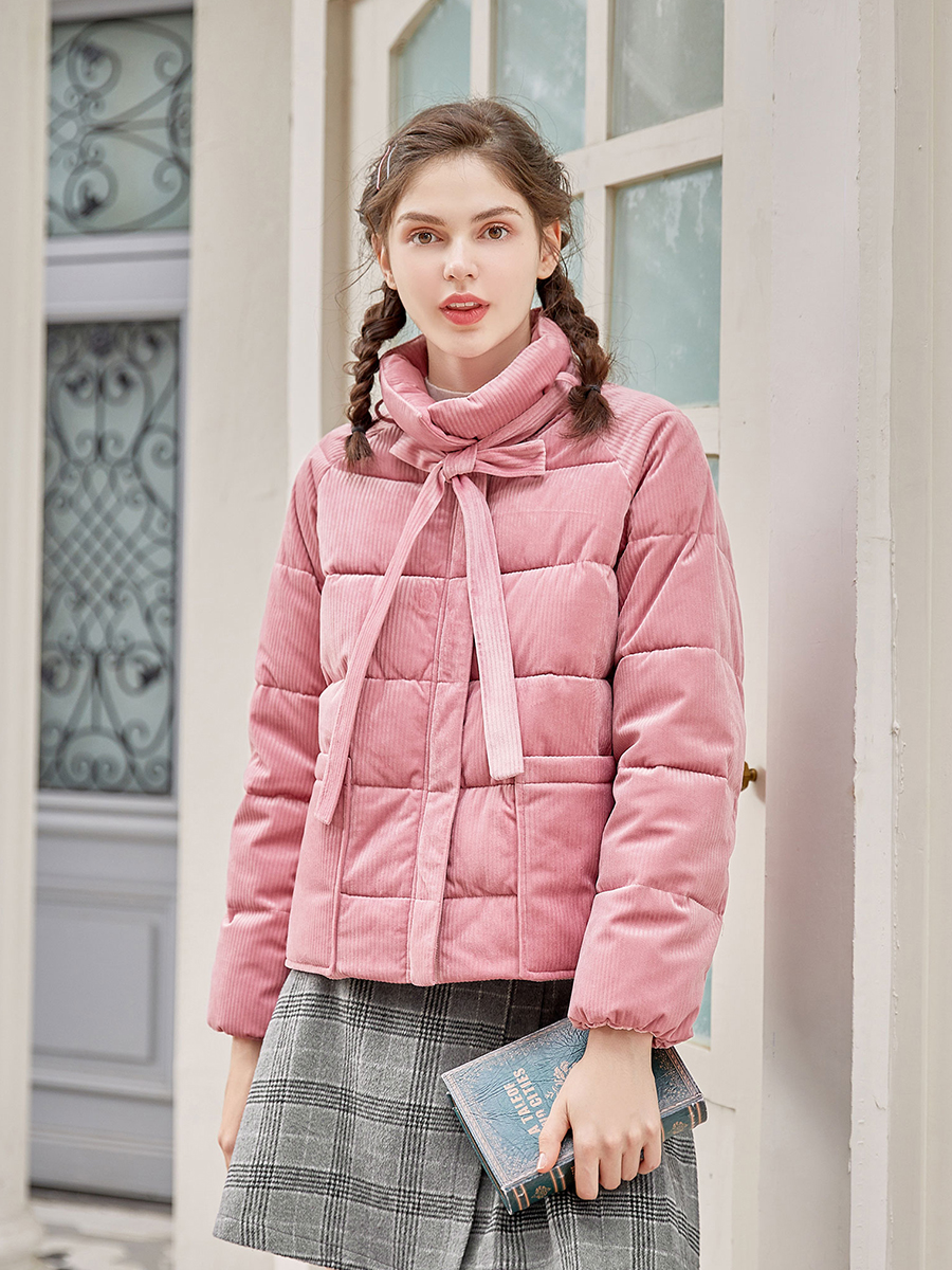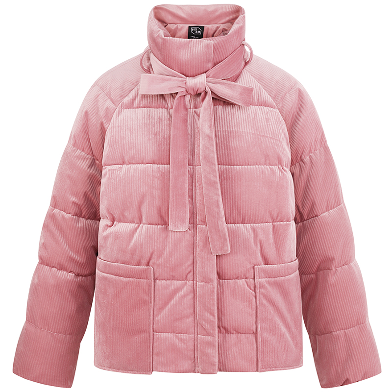 MG小象粉色棉服女短款時尚2018新款寬松蝴蝶結面包服學生冬季棉襖