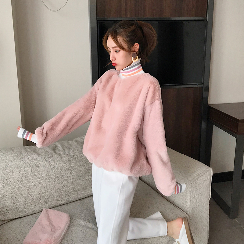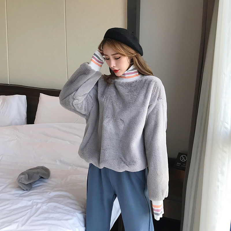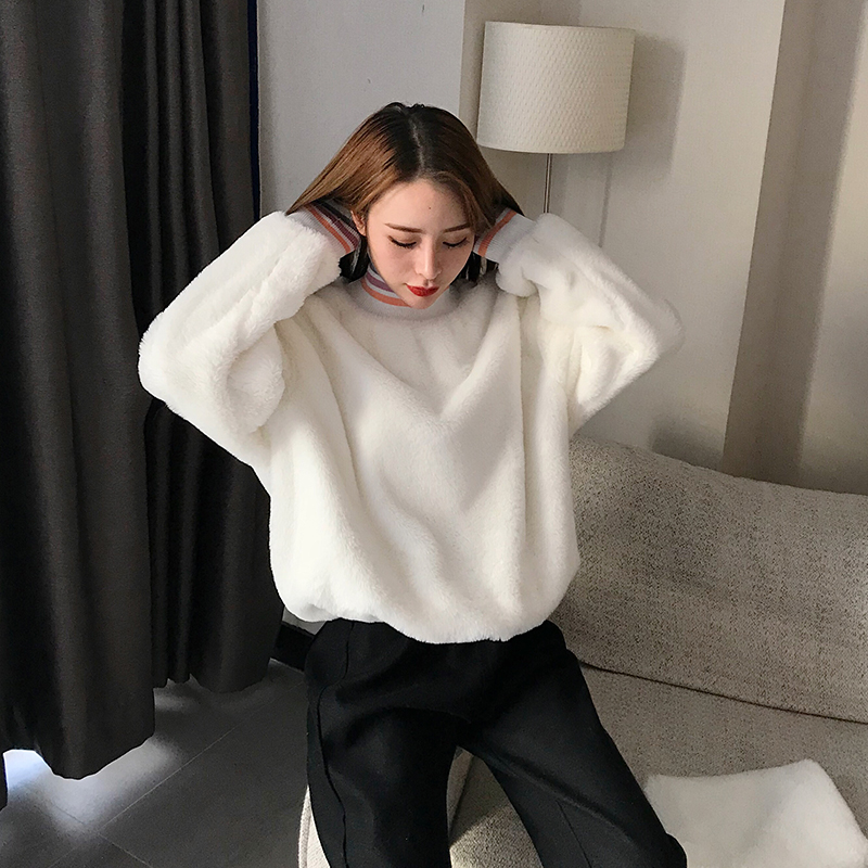 / 秋冬新款韓版時尚高領長袖條紋加絨加厚保暖上衣寬松女裝chic衛衣