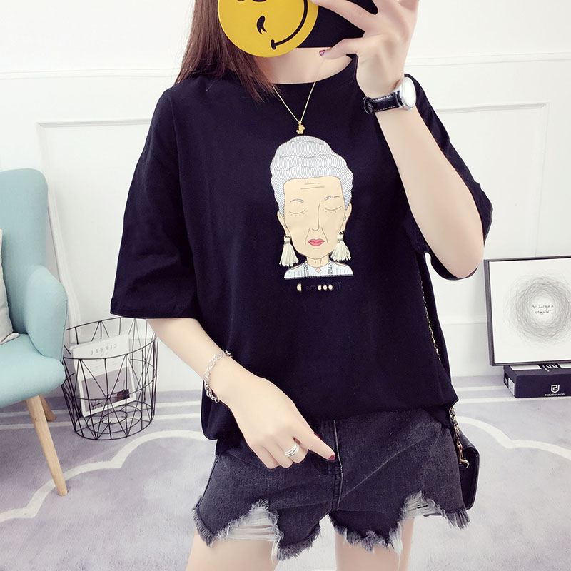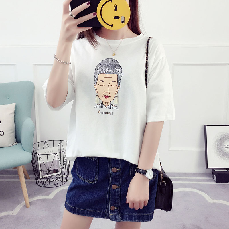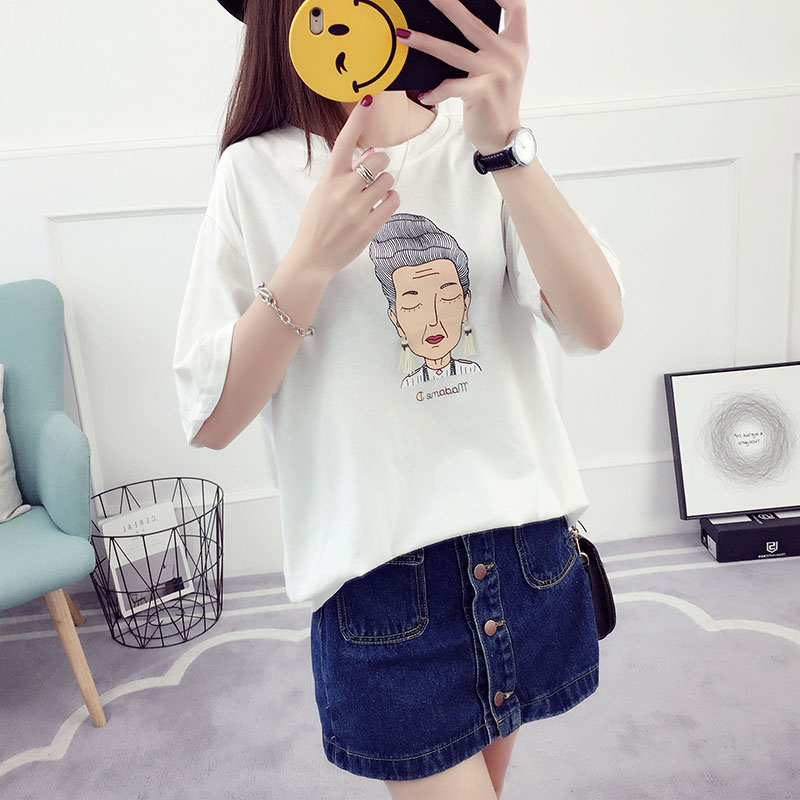/ 夏裝新款韓版學生寬松百搭學院風上衣女夏短袖t恤半截袖體恤