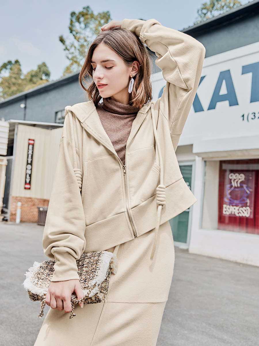 MG小象純色衛衣女連帽寬松秋冬季短款外套2018新款學生休閑上衣潮