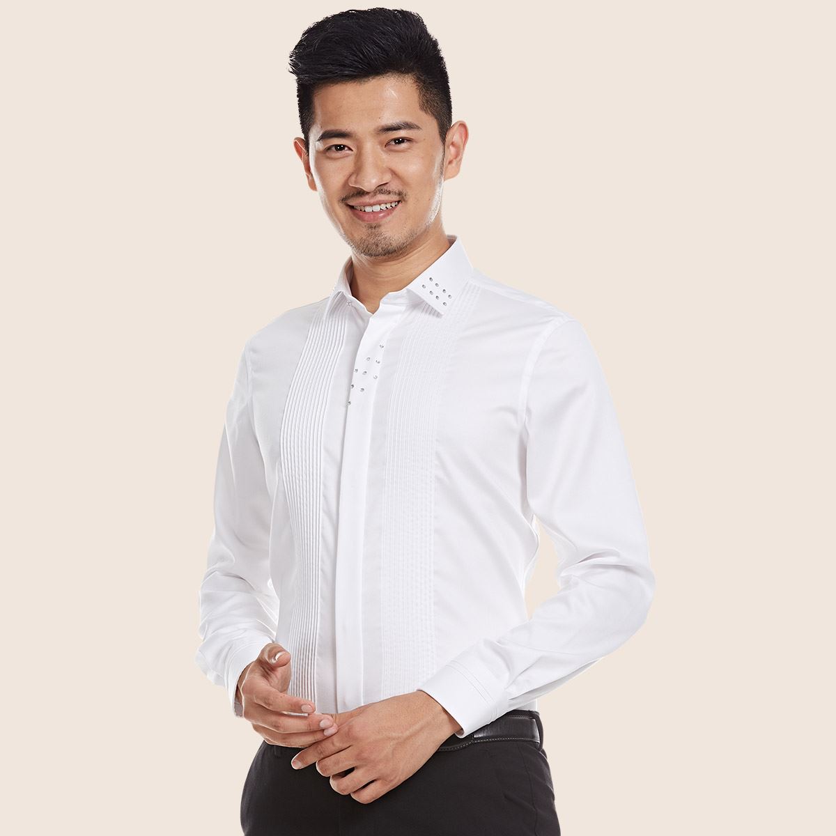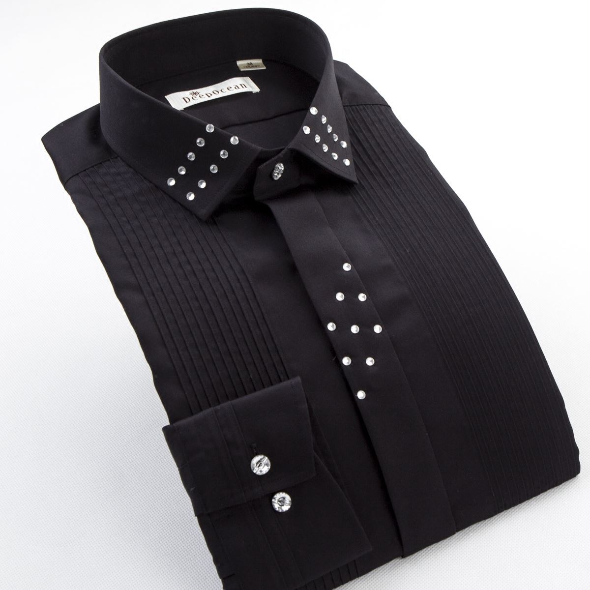/ 新潮男裝襯衫新款男士長袖襯衫黑色鑲鉆夜店修身型潮人焦點襯衣