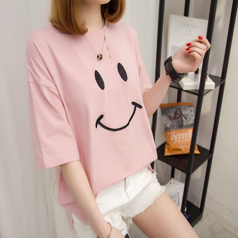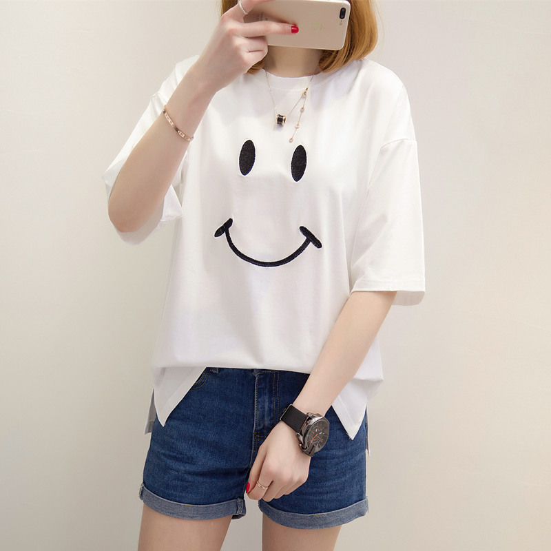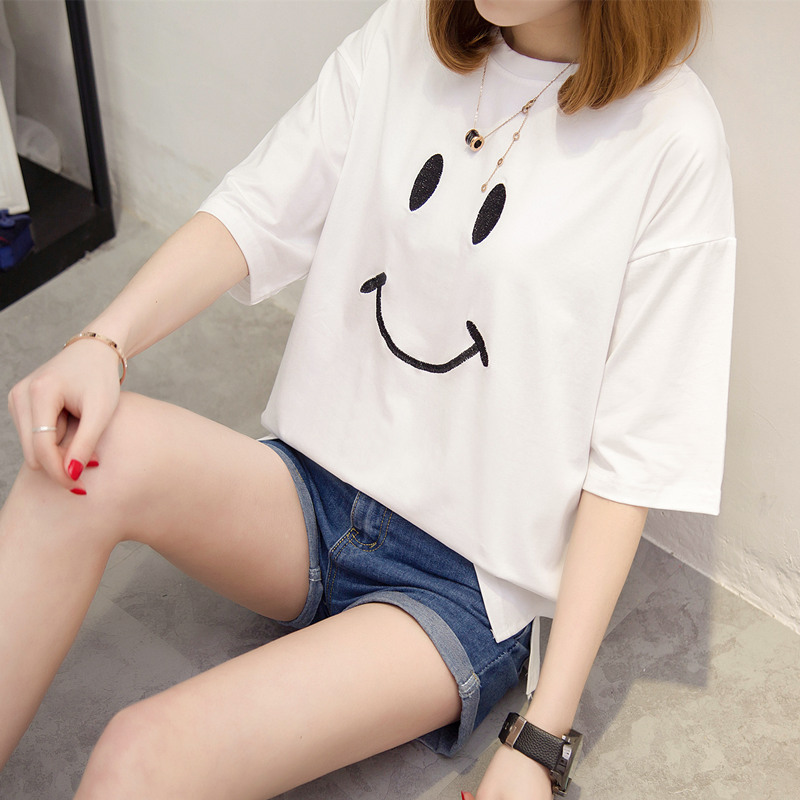 女裝夏裝新款潮白色t恤女短袖上衣寬松韓版純色打底體恤衫女