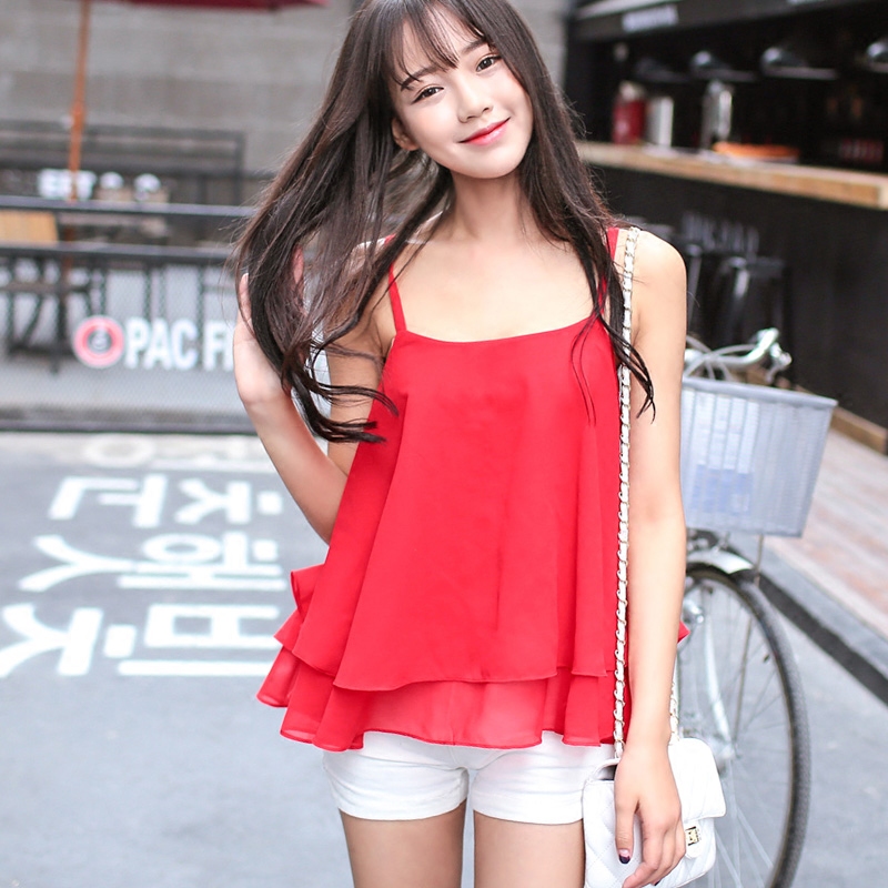 / 時尚新款打底吊帶背心女夏外穿大碼短款寬松顯瘦碎花雪紡小衫女潮