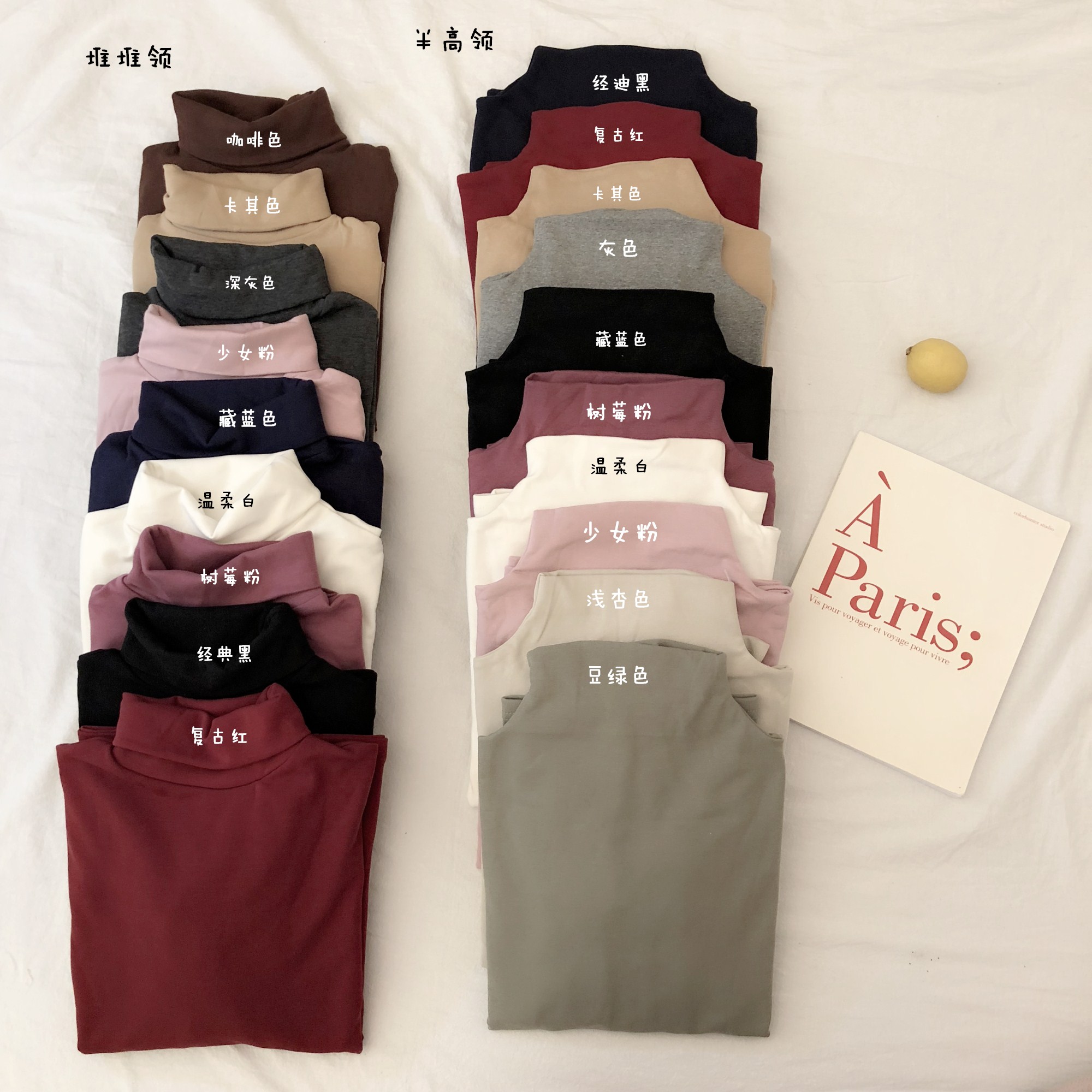 秋冬新款加厚加絨磨毛純色半高領百搭長袖T恤打底衫修身內搭上衣