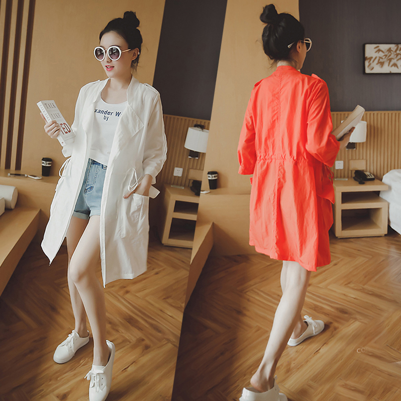 / 夏季新款韓版收腰雪紡披肩開衫中長款風衣薄外套大碼寬松防曬衣女