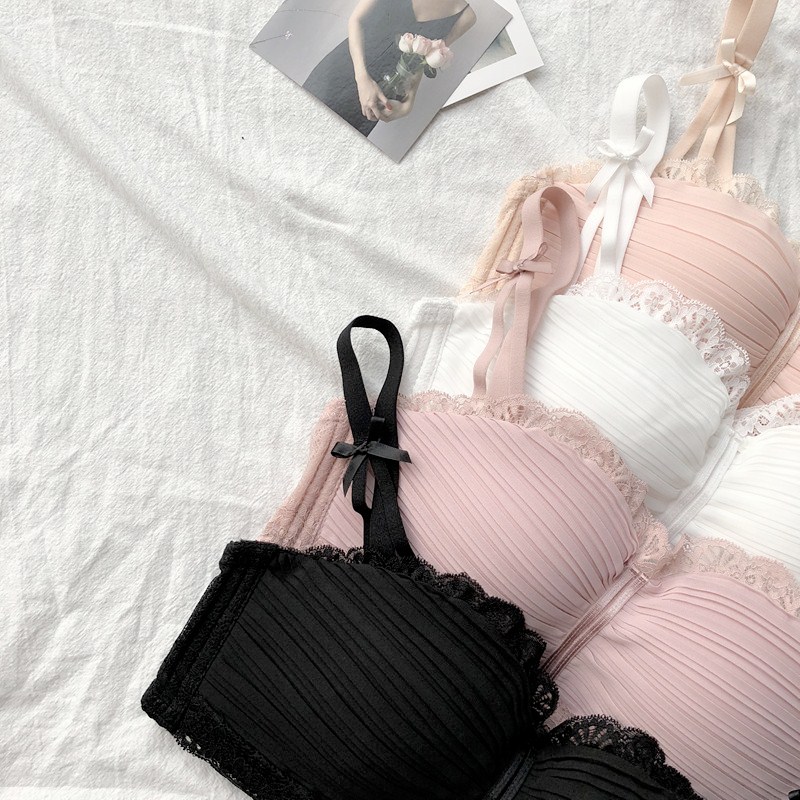 / 新款時尚甜美無鋼圈少女內衣上托聚攏小胸罩日系蕾絲花邊雪紡文胸
