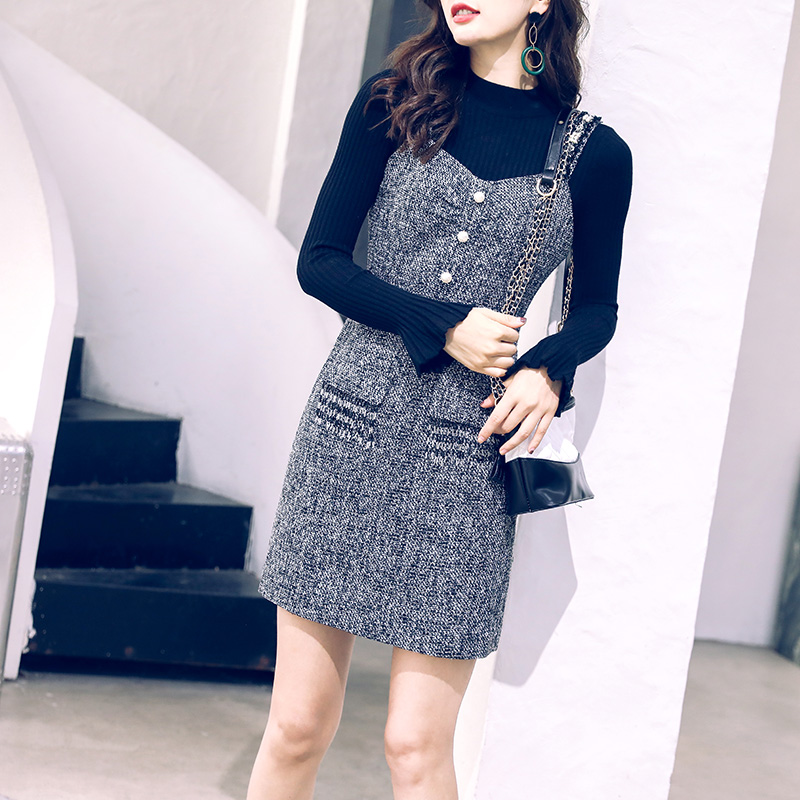 / 針織上衣毛呢連衣裙女秋冬季新款2018背帶裙兩件套小個子短款裙子