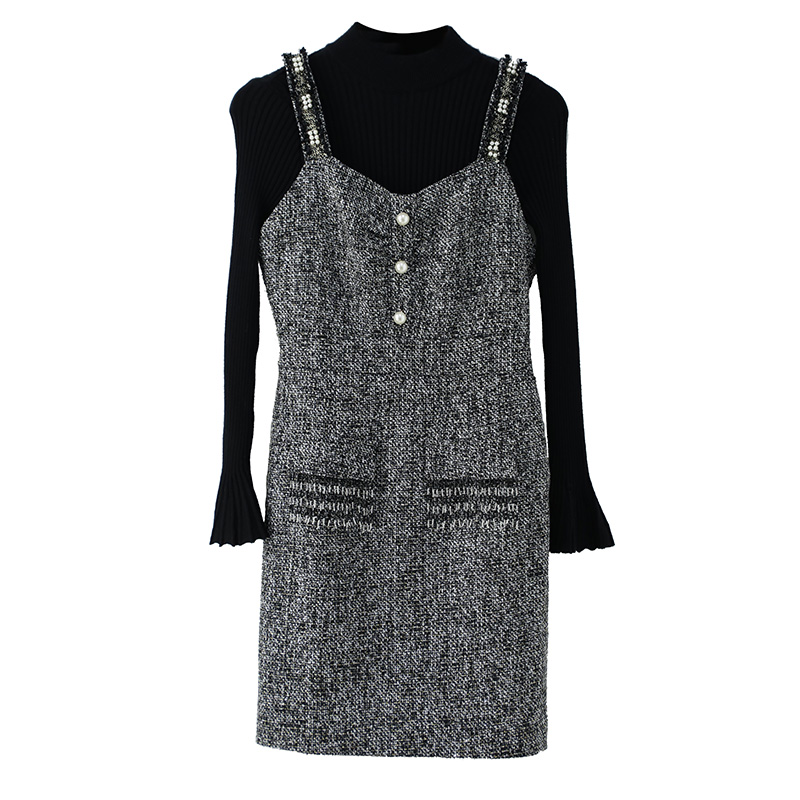 針織上衣毛呢連衣裙女秋冬季新款2018背帶裙兩件套小個子短款裙子