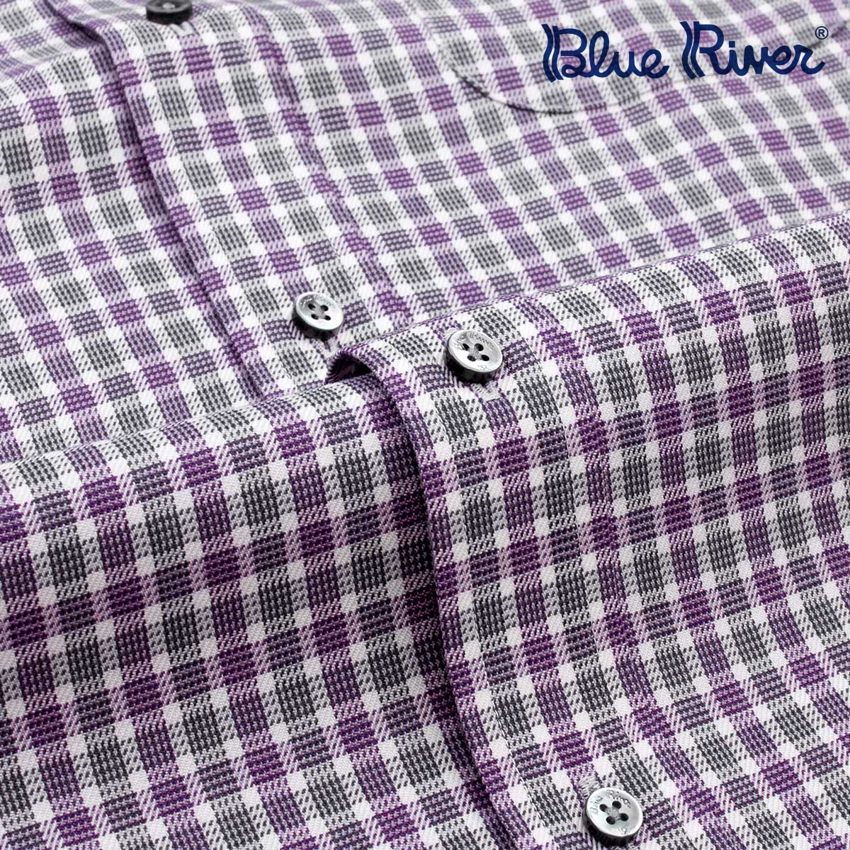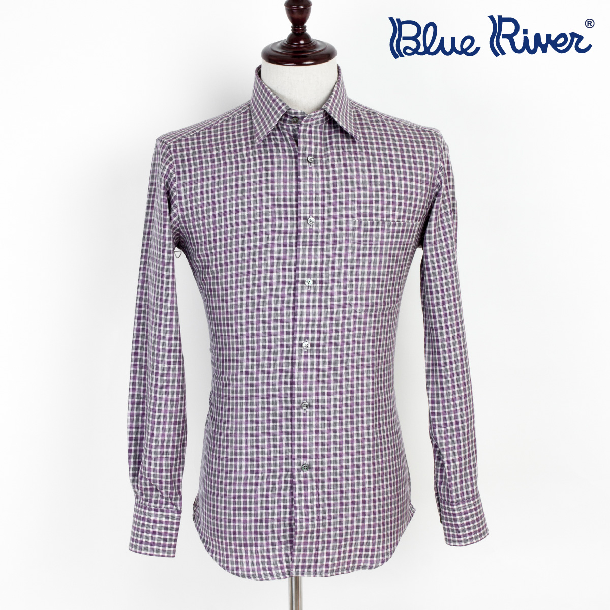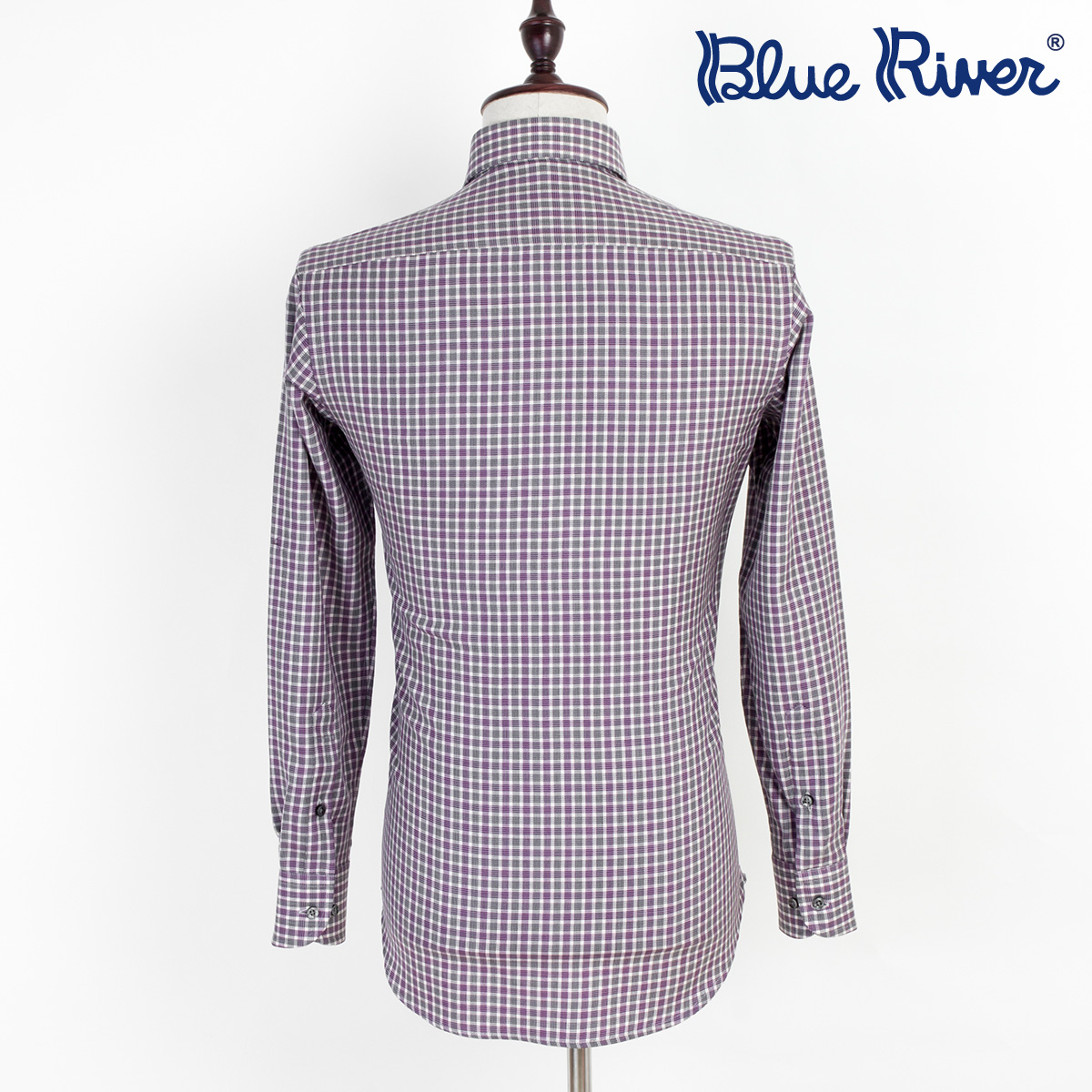 / 羊毛襯衫男長袖藍河男士高檔商務紳士羊毛免燙格子襯衣爸爸秋裝