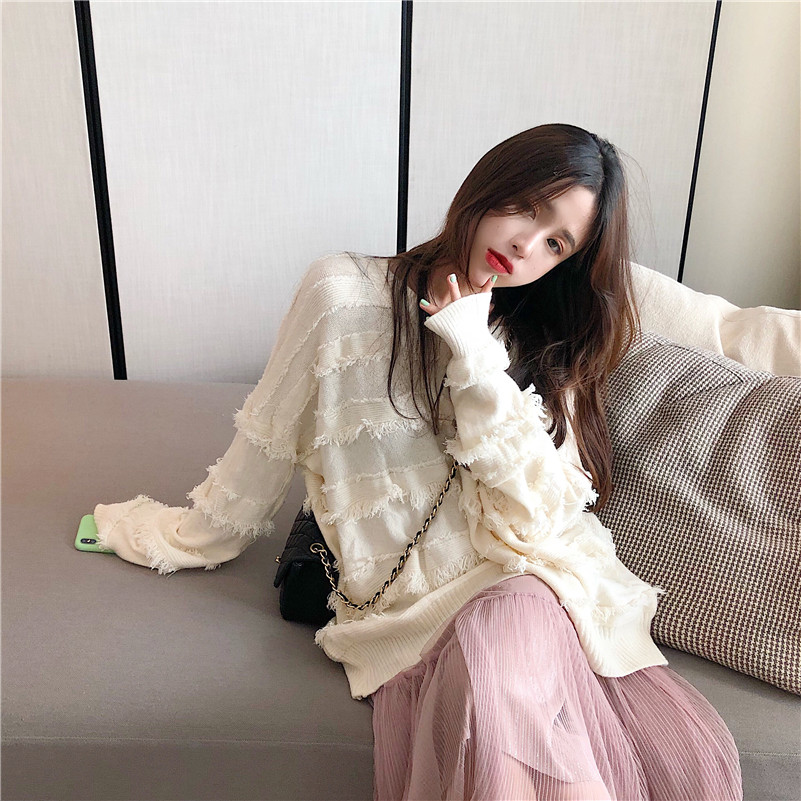 / 2018秋裝新款韓版長袖毛衣女裝氣質兩件套高腰甜美網紗裙時尚套裝