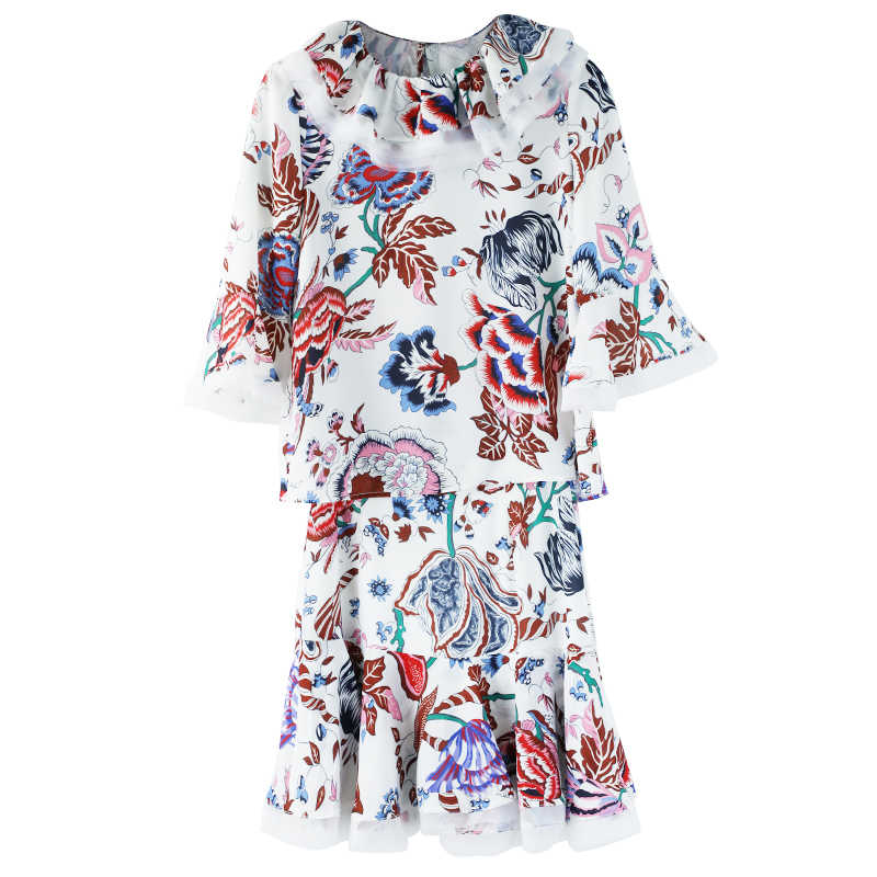 / S秀名媛氣質2018秋季時尚新款收腰顯瘦印花魚尾半身裙兩件套裝