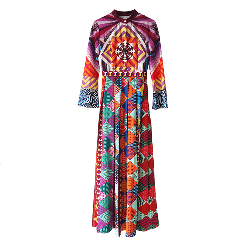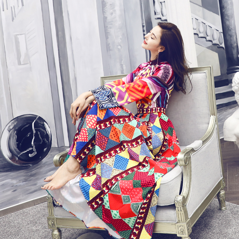 / 連衣裙女2018夏季新款印花大擺顯瘦過膝長裙中長款長袖復古秋裙子