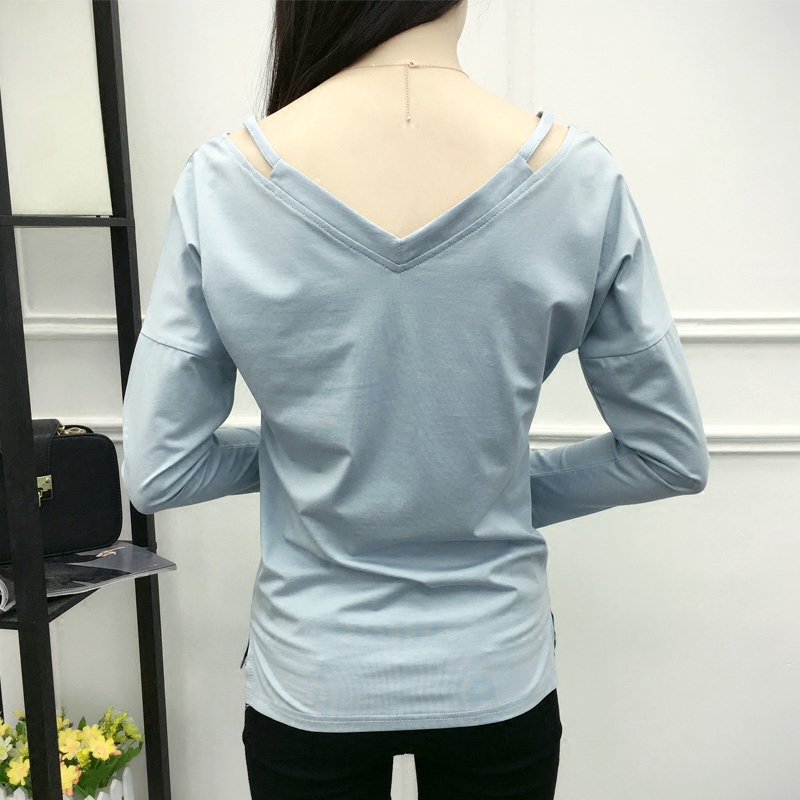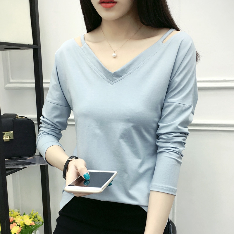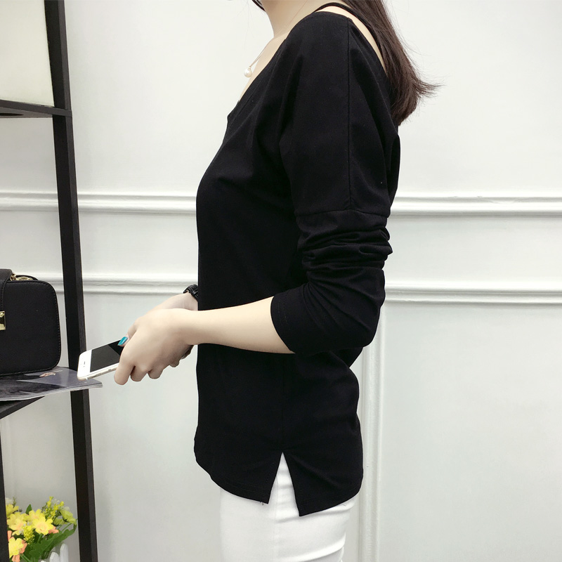 春裝新款寬松大碼顯瘦長袖T恤女打底衫純色純棉上衣體恤衫
