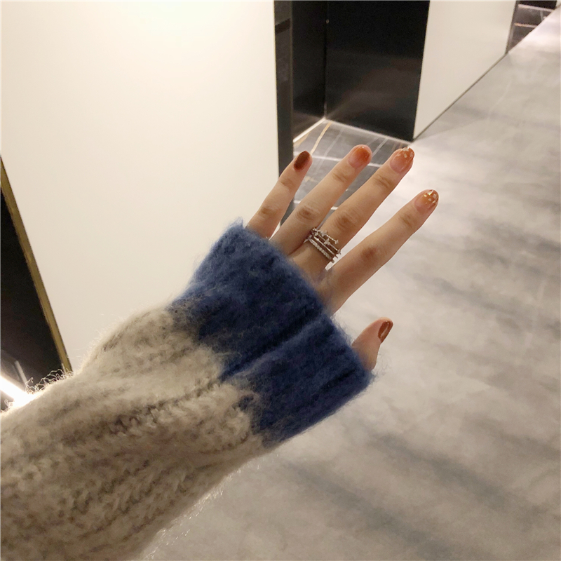 / chic慵懶風毛衣女套頭寬松加厚秋季拼接格子甜美小清新學生針織衫