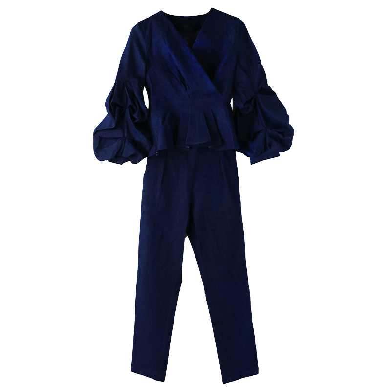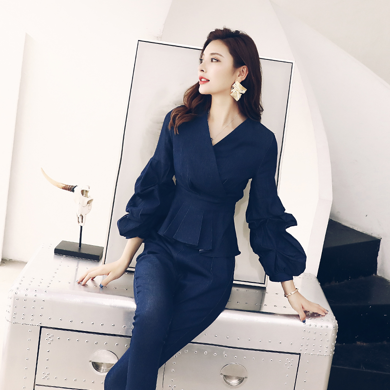時尚休閑高腰修身褲兩件套2018秋季新款牛仔網紅女神范套裝