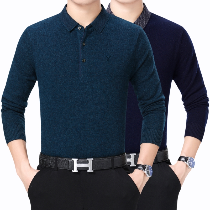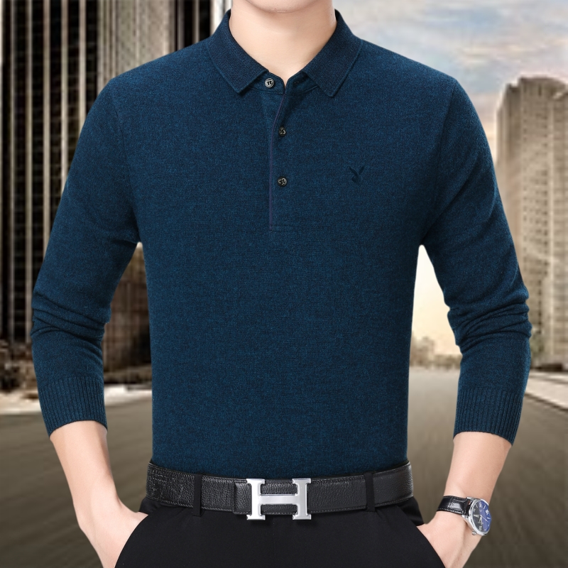 / 花花公子正品中老年男士羊絨毛衣商務男裝翻領加厚寬松大碼羊毛衫
