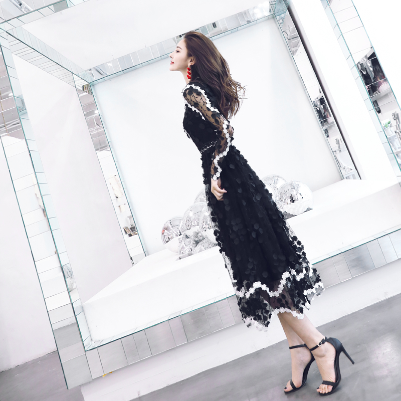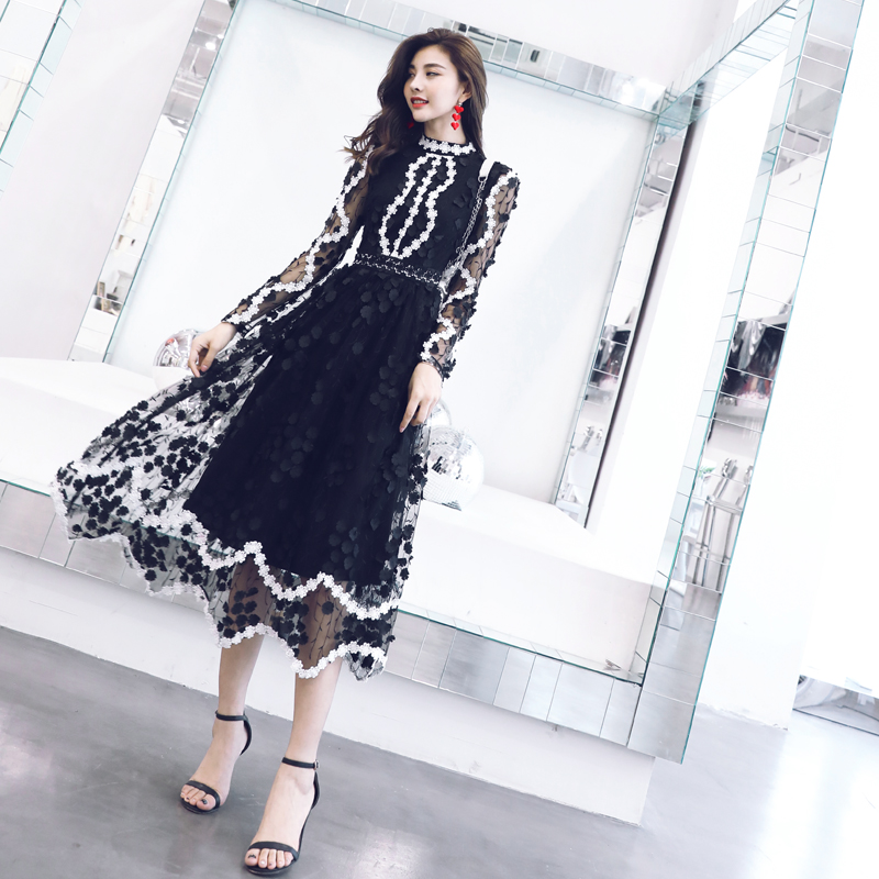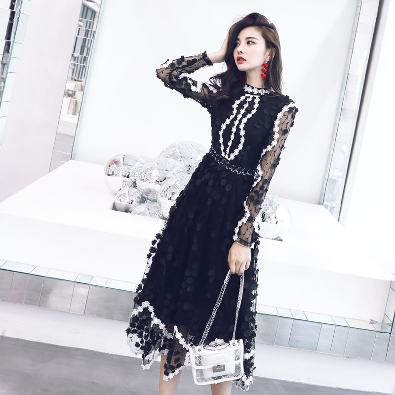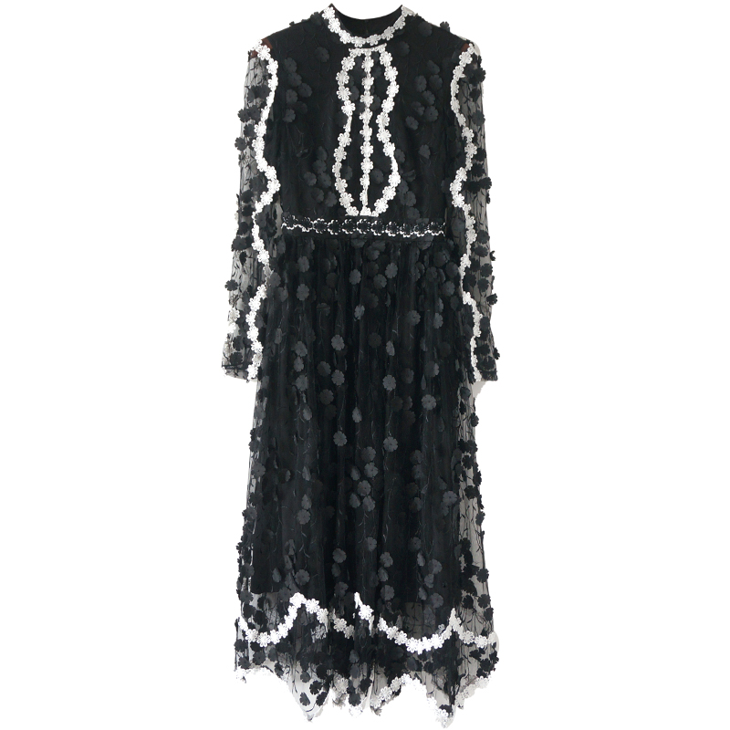 / 名媛氣質夏高端減齡重工蕾絲刺繡手工花朵網紗顯瘦公主仙女連衣裙