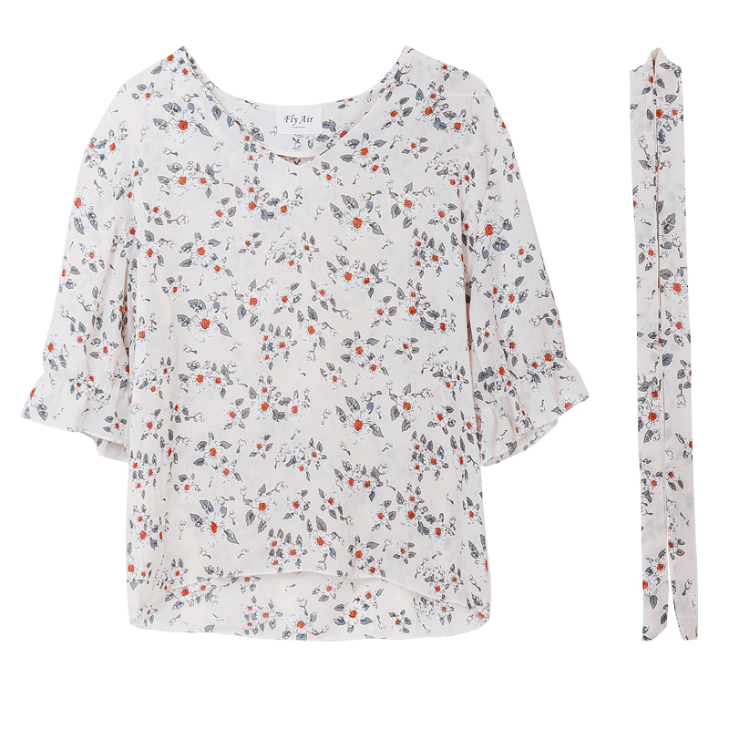 / 雪紡衫女短袖夏季新款甜美系帶碎花襯衫寬松印花打底小衫上衣