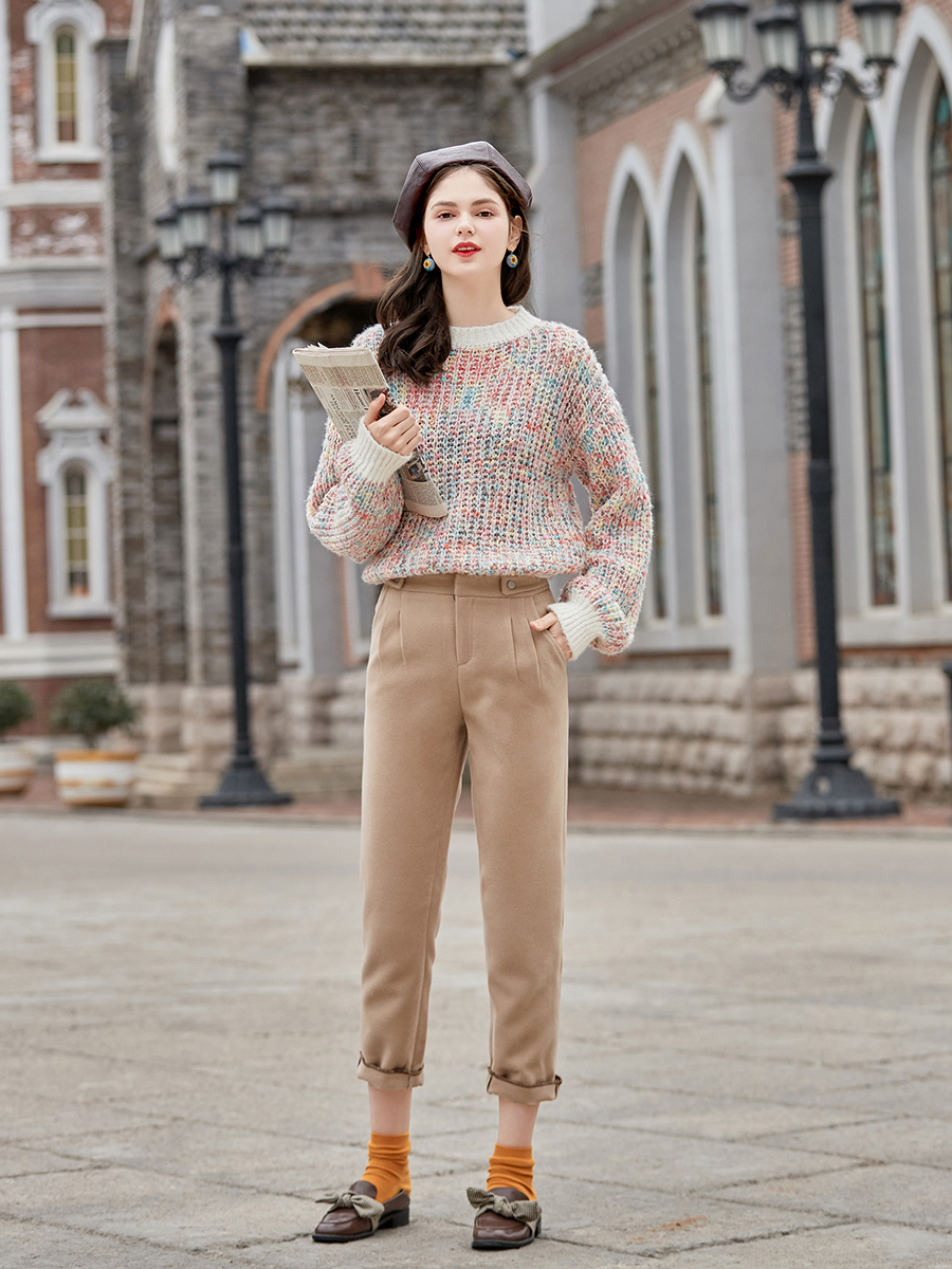 MG小象高腰毛呢直筒褲女秋冬2018新款韓版學生寬松顯瘦休閑褲子潮