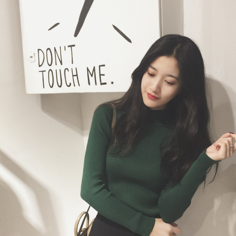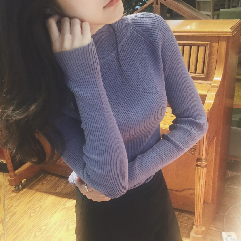 chic早秋上衣女2018新款韓版百搭修身顯瘦復古氣質基礎打底針織衫