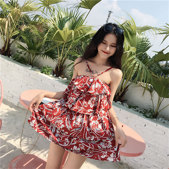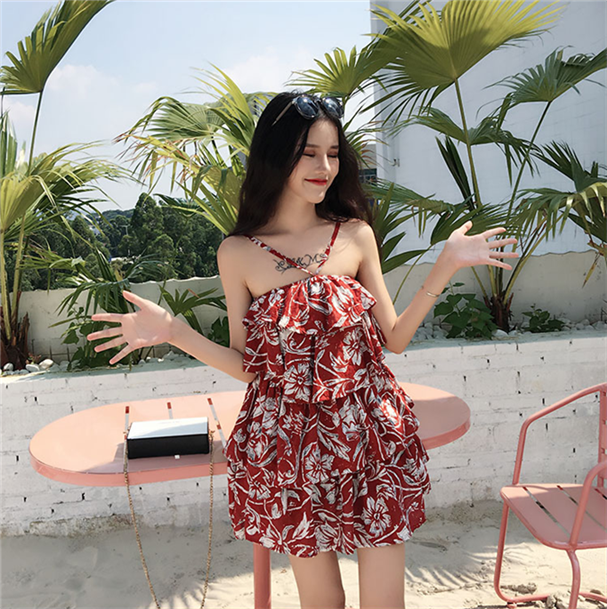小清新2018新款韓版連衣裙女復古chic秋季寬松荷葉邊短裙吊帶裙潮