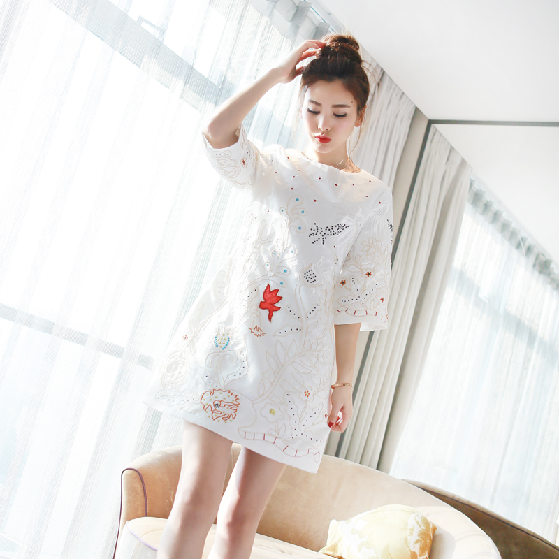/ 名媛2018秋季新款修身氣質復古裙子中袖刺繡淑女a字連衣裙女裝潮