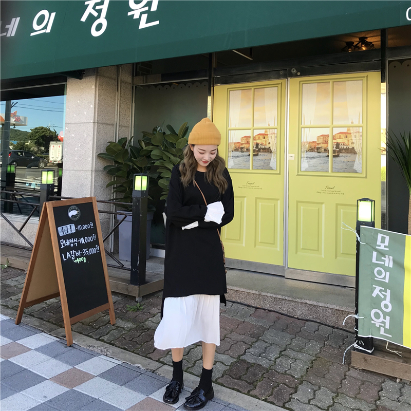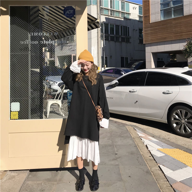 白色打底裙|黑色外搭連衣裙